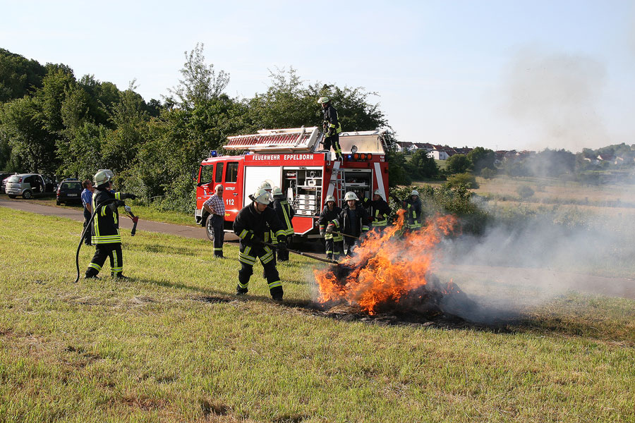 Der Heuballen musste wohl schon einige Zeit lang geschwelt haben. Als die Einsatzkräfte aus Eppelborn kurz nach der Alarmierung an der Einsatzstelle eintrafen, waren keine Flammen mehr zu sehen. Lediglich eine starke Rauchentwicklung konnte festgestellt werden.