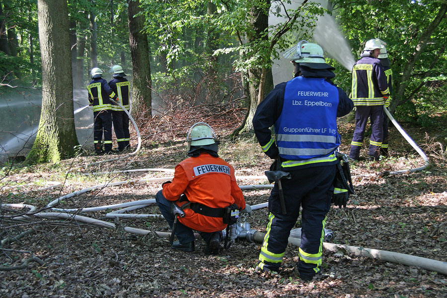 "Brand in einem Waldstück auf dem Eppelborner Hellberg" lautete die Vorgabe der diesjährigen Waldbrandübung am 14. August im Löschbezirk Eppelborn. Denn einmal im Jahr wird in einer gesonderten Übung die Brandbekämpfung und Wasserversorgung an einer entlegenen Einsatzstelle in einem der Waldgebiete in der Gemeinde Epppelborn geprobt.