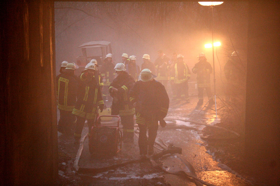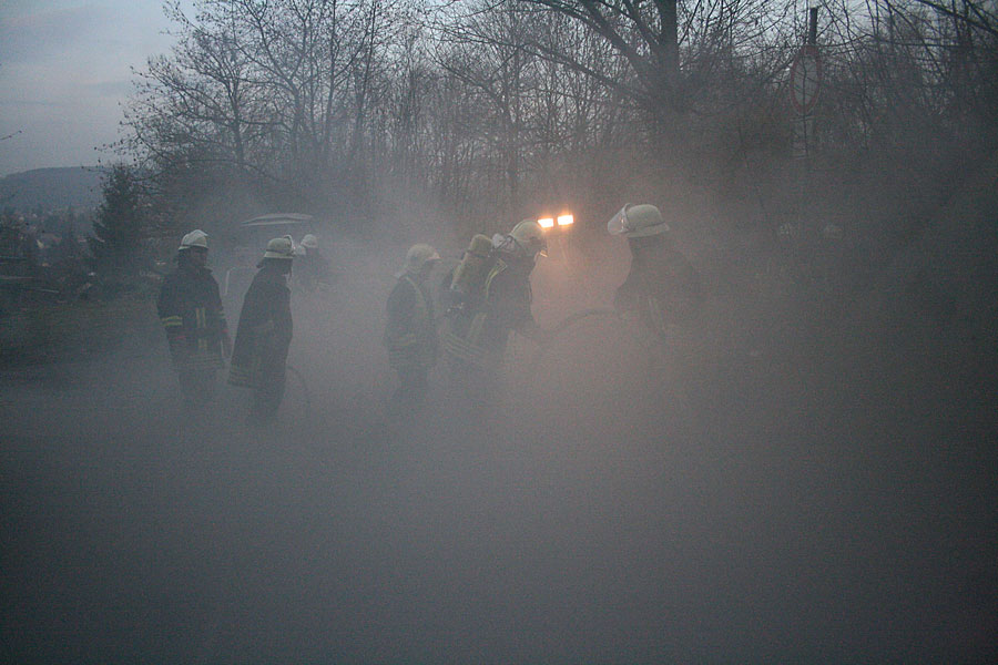 Die Sicht im Tunnel war durch den Rauch, den eine Nebelmaschine erzeugte, so stark beeinträchtigt, dass man selbst 3 Meter vor dem Tunnelausgang ins Freie noch nicht einmal Licht sehen konnte. Mit einem Druckbelüfter wurde der Tunnel dann rauchfrei geblasen. Die beiden Übungsleiter waren mit der Leistung zufrieden und bedankten sich für die Unterstützung aus Bubach-Calmesweiler.