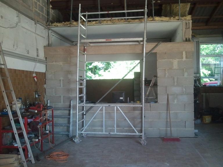 Der Neubau, indem die neue Küche für das DRK Habach Platz findet, wurde in der vergangenen Woche fertig gestellt, sodass nun aus der alten Küche eine Umkleide für den Löschbezirk Habach entstehen kann. Seit einigen Wochen überschnitten sich die Arbeiten an beiden Baustellen, sodass in der neuen Umkleide und der Fahrzeughalle schon viel geschehen ist. In der Fahrzeughalle wurde bereits die Decke sowie eine Wand abgerissen und eine neue wieder eingezogen, diese nun die neue Trennwand zwischen Fahrzeughalle und dem dadurch neu geschaffenen Funkraum bildet. Auch wurde bereits ein neues, 20cm höheres Garagentor eingesetzt, sodass jetzt die Durchfahrtshöhe für das neue Feuerwehrfahrzeug gegeben ist.