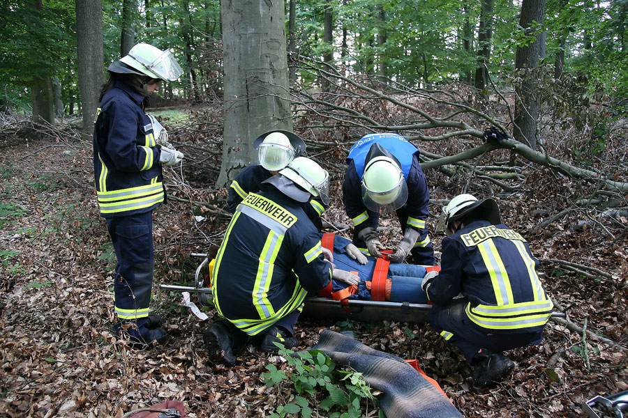 Auch die verletzen Personen konnten gefunden und nach einer Erstversorgung durch medizinisches Fachpersonal der Feuerwehr zum Sammelplatz gebracht werden. So konnte Löschbezirksführer Dr. Frank Schwan den 68 teilnehmenden Einsatzkräften bei der abschließenden Nachbesprechung im Gerätehaus in Eppelborn auch eine großartige Leistung bescheinigen.