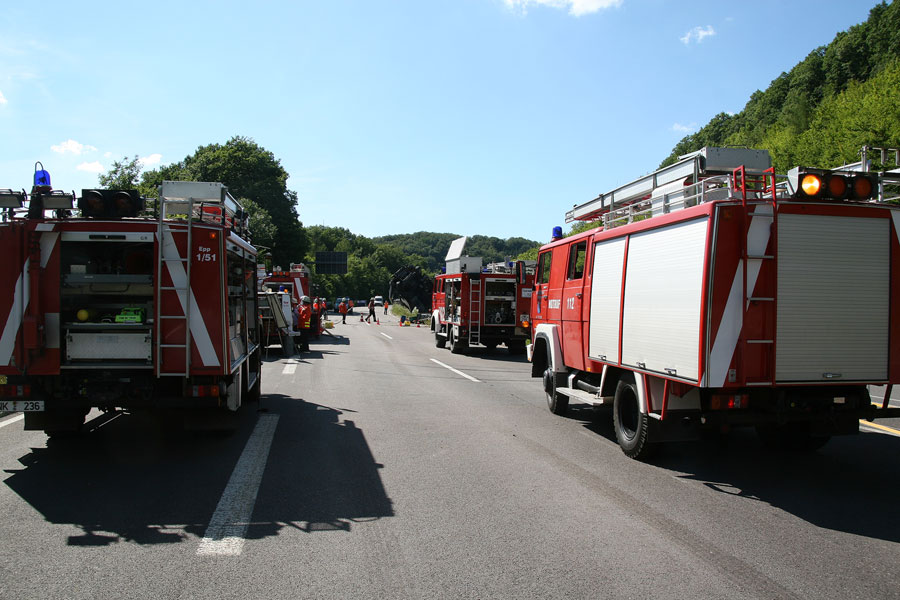 Nach Rücksprache mit der Polizei wurde dann die Fahrbahnbegrenzung im Baustellenbereich mit einem Motortrennschleifer aufgeschnitten, um den Fahrzeugen, die sich bis weit hinter die Unfallstelle gestaut hatten, ein Abfahren aus dem Stau zu ermöglichen. Beide Fahrtrichtungen wurden dann zwischen den Anschlussstellen Eppelborn und Tholey voll gesperrt, was trotz spezieller Verkehrsregelung durch die Polizei zu erheblichen Behinderungen in den Ortsdurchfahrten der anliegenden Ortschaften führte.