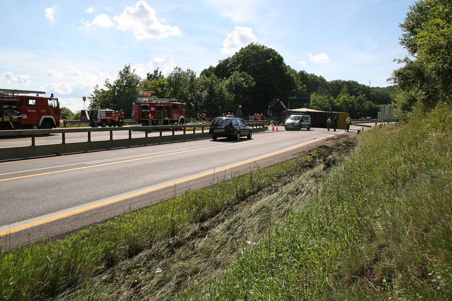Umgestürzter Sattelzug blockierte Autobahn bei Eppelborn