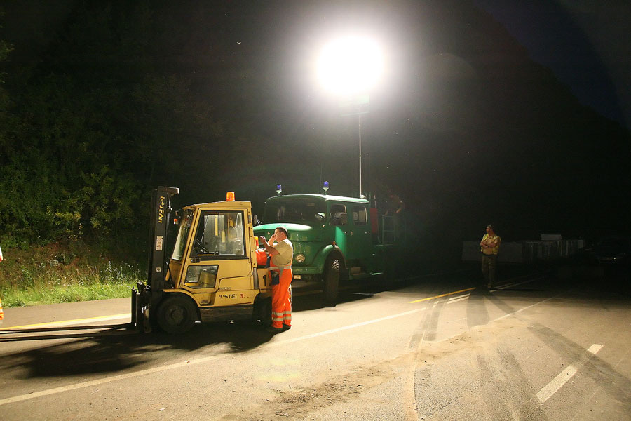 Noch in der Nacht wurde das mit Dieselkraftstoff kontaminierte Erdreich am Mittelstreifen ausgebaggert und die Fahrbahnbegrenzung wiederhergestellt.
