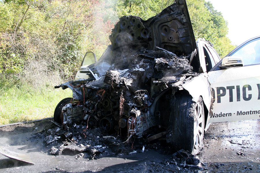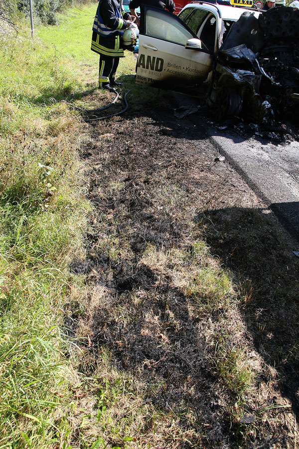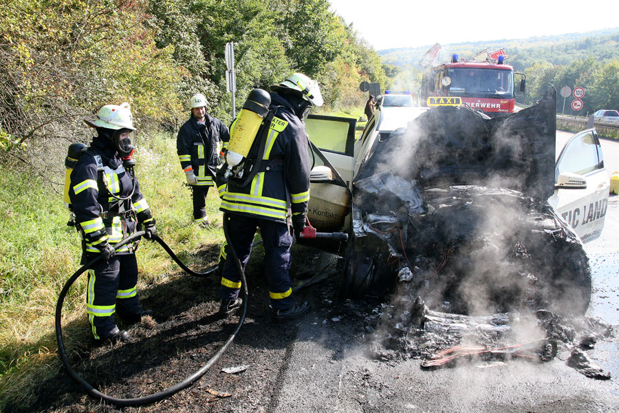 Gegen Mittag des 24. September 2011 befuhr eine Taxifahrerin mit ihrem Fahrzeug die Autobahn A1 in Fahrtrichtung Trier, als sie weissen Rauch bemerkte. Sie steuerte die erst wenige Wochen alte Mercedes E-Klasse auf den Seitenstreifen, als kurz darauf dichter schwarzer Rauch und erste Flammen aus dem Motorraum drangen. Sie verlies daraufhin das Fahrzeug und rief über den Notruf die Feuerwehr.