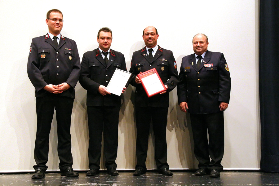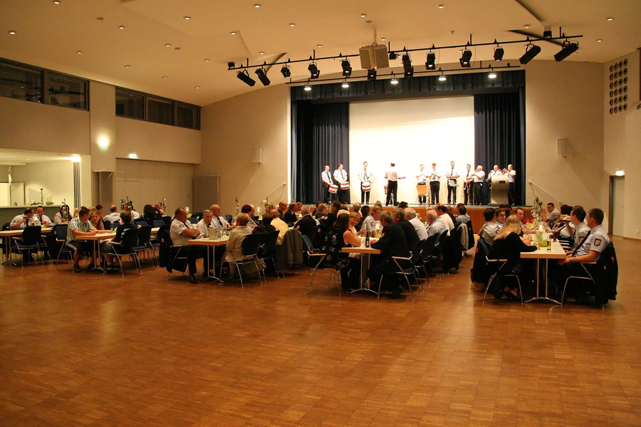 Auch Wehrführer Hermann Josef Recktenwald dankte allen Anwesenden für die geleistete Arbeit im vergangenen Jahr. Es sei nicht leicht zu akzeptieren, wenn private Termine durch eine Alarmierung ins Wasser fallen, wusste er aus eigener Erfahrung zu berichten. Doch damit müssen Feuerwehrleute und ihre Familienmitglieder an 365 Tagen im Jahr rechnen. Wie unplanbar der Feuerwehrdienst ist, konnten die Ehrengäste dann auch prompt selbst erleben: Während im Saal gefeiert wurde, mussten Recktenwald und drei weitere Kameraden zu einem Einsatz nach Wiesbach ausrücken und die Löscharbeiten dort mit der in Eppelborn stationierten Wärmebildkamera unterstützen.