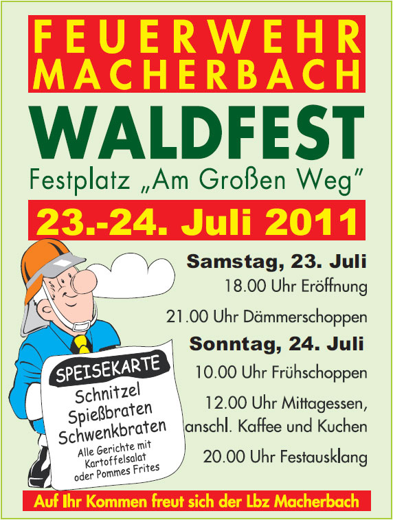 Die Freiwillige Feuerwehr des Löschbezirks Macherbach lädt von Samstag, 23. Juli bis Sonntag 24. Juli…