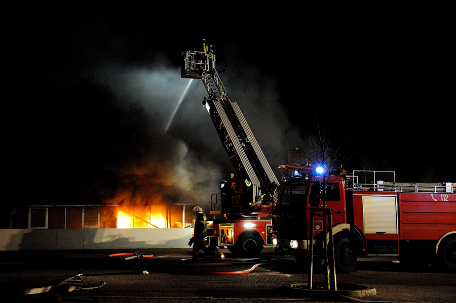 Die Besatzungen der beiden Löschfahrzeuge der City-Wache konzentrierten sich zunächst darauf, die etwa 15 weiteren LKW und Abschleppwagen, die auf dem Firmengelände stehen, gegen die Flammen zu schützen. Einsatzleiter Herrmann und Neunkirchens Wehrführer Franz-Josef Kuhn forderten aufgrund der Situation sofort weitere Verstärkung an.