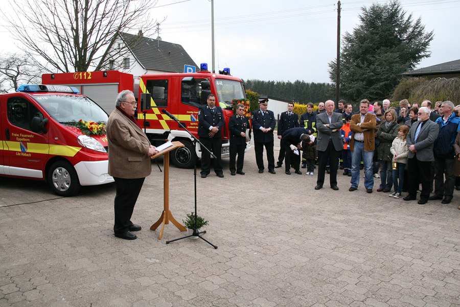 Gleich zwei neue Einsatzfahrzeuge konnte Bürgermeister Fritz-Hermann Lutz in einer Feierstunde am 31. März 2012 an den Löschbezirk Habach übergeben. Entsprechend dem Eppelborner Brandschutzbedarfs- und -entwicklungsplan wurde ein 31 Jahre altes Löschgruppenfahrzeug LF 8 durch ein modernes Tragkraftspritzenfahrzeug für rund 95.000 € ersetzt.
