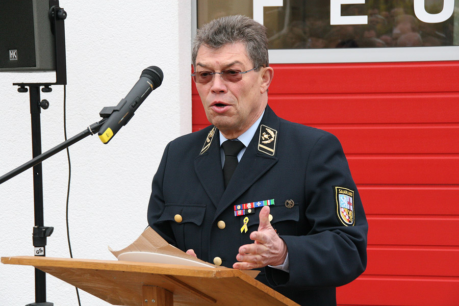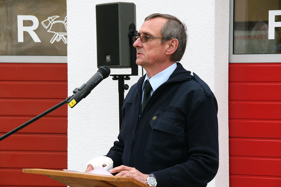 Bei der offiziellen Übergabe der Räumlichkeiten und der neuen Fahrzeuge lobte Bürgermeister Fritz-Hermann Lutz das große Engagement des Löschbezirkes und die vorbildliche Zusammenarbeit zwischen DRK und Feuerwehr Habach bei der Umsetzung des Bauprojektes. Im Anschluss an seine Rede segnete Pastor Matthias Marx die neuen Fahrzeuge und die Räumlichkeiten und bat für himmlischen Schutz bei allen Einsätzen.