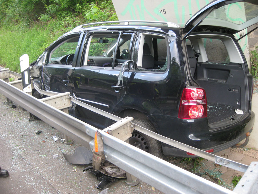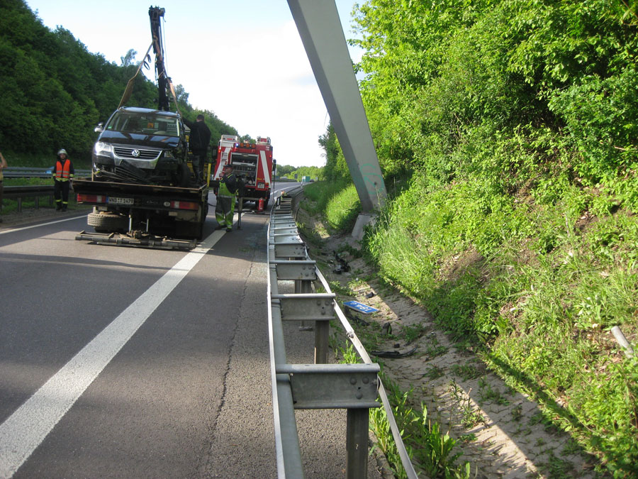Zwischen Leitplanke und Brückenpfeiler eingeklemmt
