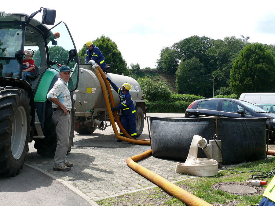 [b]Tholey.[/b] "Brand im Engscheider Wald", hieß es beim Alarm zum Auftakt der Großübung, an der Feuerwehren der Gemeinde Tholey, der DRK Ortsverband Sotzweiler/Bergweiler, der Ortsverband Theley des Technischen Hilfswerks, der Löschbezirk Thalexweiler (Landkreis Saarlouis) und der Löschbezirk Eppelborn (Landkreis Neunkirchen) teilnahmen. In diesem Jahr plante die Führung des Löschbezirks Sotzweiler die "Drei-Länder- Eck"-Übung. Diese ist seit etwa 30 Jahren fester Bestandteil des Übungsplanes der Feuerwehren in der Gemeinde Tholey. Zweck ist es, die Zusammenarbeit gemeinde-, kreis- und organisationsübergreifend zu festigen und auszubauen. In diesem Jahr nahmen an der dreistündigen Übung rund 150 Hilfskräfte teil. Aufgeteilt war die Übung in mehrere Szenarien, welche nach und nach abgearbeitet werden mussten und alle realitätsnah geplant waren. [left][cmsimg]4461[/cmsimg][/left] Als erstes galt es für die Kräfte der Feuerwehr den simulierten Brand im Engscheider Wald auf einer Fläche von mehreren 1000 Quadratmeter zu bekämpfen und einzudämmen. Da in Waldgebieten keine Wasserversorgung durch Hydranten vorhanden ist, musste das Löschwasser aus der Theel und den in der Nähe befindlichen Weiheranlagen über mehrere 100 Meter Schlauchleitung und Pumpen zur Brandstelle befördert werden. Das zweite Übungsszenario sah vor, dass diese Wasserversorgung allerdings nicht ausreichend war. Um das Problem zu beheben, wurde ein sogenannter Pendelverkehr mit den vorhandenen Tanklöschfahrzeugen eingerichtet. Dies bedeutete, dass in der Lebacher Straße in Sotzweiler eine Wasserentnahmestelle aus dem Trinkwassernetz eingerichtet werden musste. Wichtig bei solchem Pendelverkehr ist, dass zum einen ausreichend Fahrzeuge zur Verfügung stehen und zum zweiten der Verkehr so organisiert wird, dass die Fahrzeuge sich nicht gegenseitig bei der An- und Abfahrt behindern. [right][cmsimg]4464[/cmsimg][/right] Der dritte Abschnitt befasste sich ebenfalls mit der Wasserversorgung. Diesen Part übernahm das Technische Hilfswerk Theley in Verbindung mit ortsansässigen Landwirten, welche mit ihren Güllefässern zur Örtlichkeit am Kirmesplatz gekommen waren. Dort wurde die Theel angestaut und die Fässer und ein Vorratsbecken befüllt. Die Landwirte transportierten im Anschluss das Löschwasser zur Einsatzstelle und löschten im konkreten Fall einen durch den Waldbrand entstanden Flächenbrand neben der Bundesstraße 269. Als abschließende Aufgabe mussten die Kräfte von Feuerwehr, THW und Deutsches Rotes Kreuz gemeinsam ein wildes Zeltlager im betroffen Waldgebiet evakuieren und Jugendliche und deren Betreuer, dargestellt durch Mitglieder der Jugendfeuerwehr, versorgen und zu den Rettungswagen transportieren. Um jedoch zu den Eingeschlossenen vordringen zu können, war es erforderlich, zuerst durch den Brand umgestürzte Bäume zu beseitigen. Durch das unwegsame Gelände gestaltete sich dieser Abschnitt als sehr schwierig und zeitintensiv. [left][cmsimg]4470[/cmsimg][/left] Bürgermeister Hermann-Josef Schmidt, der die Übung als Beobachter verfolgte, zeigte sich in der Nachbesprechung sehr zufrieden. Er lobte die reibungslose und unkomplizierte Zusammenarbeit und bedankte sich bei allen Anwesenden für ihr ehrenamtliches Engagement im Dienst für den Nächsten. Diesen Worten schloss sich Wehrführer Karl-Heinz Loch uneingeschränkt an und dankte den anwesenden Landwirten, für ihre Bereitschaft sich nicht nur an dieser Übung zu beteiligen, sondern auch in einem eintretenden Ernstfall mit ihren Gerätschaften zur Verfügung zu stehen. [infobox title="Auf einen Blick"] [b]Beteiligte Organisationen:[/b] Feuerwehr Tholey: Löschbezirke Sotzweiler, Bergweiler, Tholey, Hasborn-Dautweiler, Überroth, Lindscheid, Theley (Einsatzbereitschaft) und Scheuern (Einsatzbereitschaft). Feuerwehr Lebach: Löschbezirk Thalexweiler. Feuerwehr Eppelborn: Löschbezirk Eppelborn. THW: Ortsverband Theley. DRK: Ortsverein Sotzweiler-Bergweiler. [/infobox]