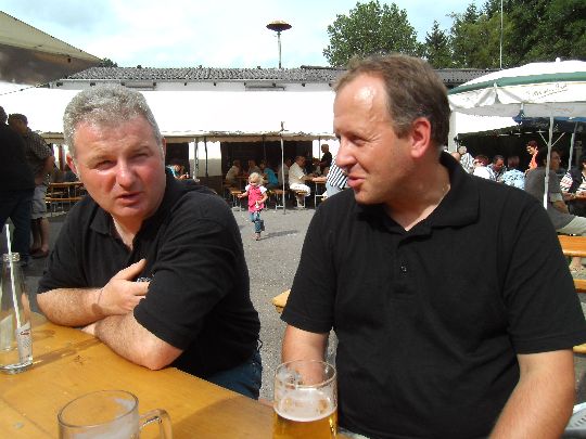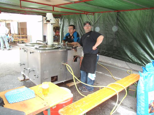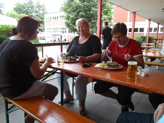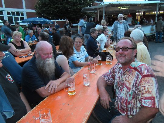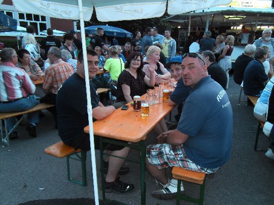 Der Samstag begann mit einem guten gemeinsamen Frühstück, begleitet von einem tollen Sonnenschein. Langsam trafen die Frauen und Alterswehrkameraden ein, um das Essen für Abends und den nächsten Tag vorzubereiten. Es war eine gute Truppe beisammen, die Hand in Hand, mit viel Spaß und Freude, die anfallenden Arbeiten erledigte. Der Nachmittag verlief ruhig und für unsere Gäste war ein Besuch des Bergwerk Velsen geplant. Sie verlebten hier im Saarland einen schönen Nachmittag. Das hervorragende Bierwetter zog bereits schon früh viele Besucher an und der Samstagabend verprach ganz toll zu werden. In der Fahrzeughalle war eine Disco geplant und DJ Markus sorgte für ordentliche Musik. Durch die günstige Wetterlage konnten unsere Besucher lange draussen sitzen und es zog kaum jemanden füh nach Hause.