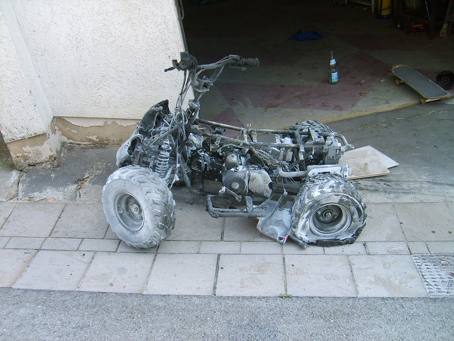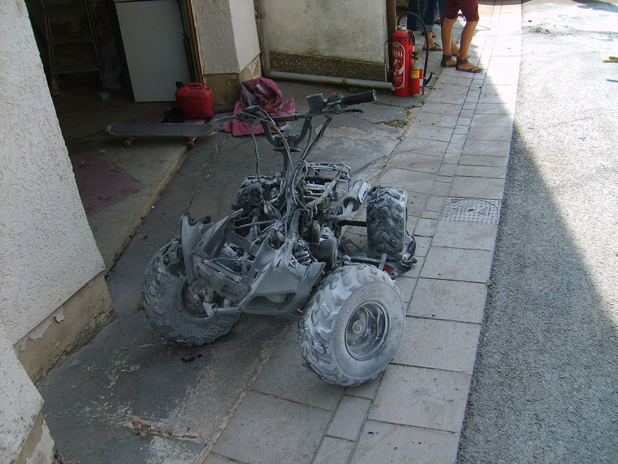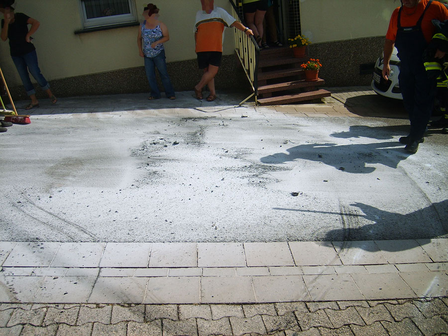 In der Straße "Im Kleegarten" im Eppelborner Ortsteil Bubach-Calmesweiler geriet am Nachmittag des 22. August 2012 ein sogenanntes Quad in Brand. Um 15:34 Uhr wurde deshalb der Löschbezirk Bubach-Calmesweiler von der Leitstelle über Funkmeldeempfänger alarmiert. Bereits vor dem Eintreffen der Feuerwehr gelang es Bauarbeitern, die gerade in der Straße beschäftigt waren, das Feuer mit Pulver-Feuerlöschern zu bekämpfen. Die kurz darauf eintreffenden Einsatzkräften führten eine Nachkontrolle der Einsatzstelle durch und halfen dabei, die Fahrbahn von Pulverrückständen zu reinigen. Die Brandursache ist unbekannt und muss von der Polizei, die ebenfalls mit einem Kommando vor Ort war, ermittelt werden. Das Quad brannte bei dem Feuer vollständig aus. Die Feuerwehr war mit einem Fahrzeug und 10 Einsatzkräften vor Ort im Einsatz.