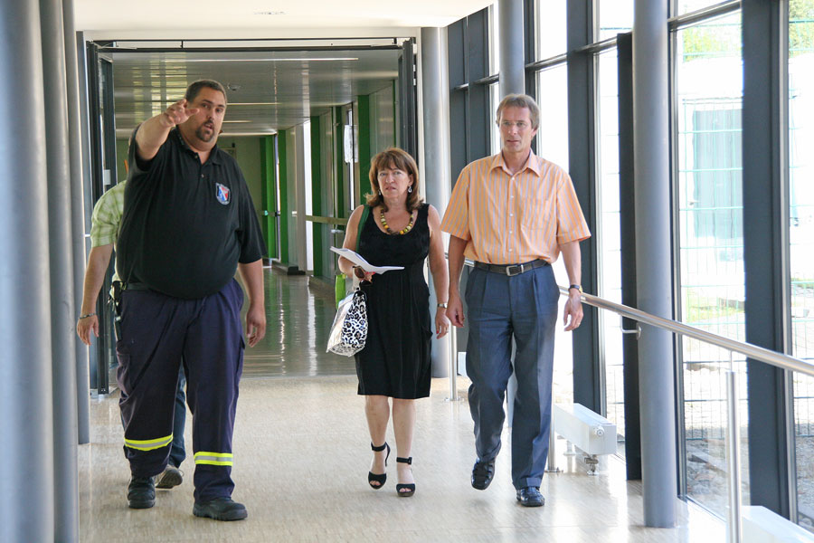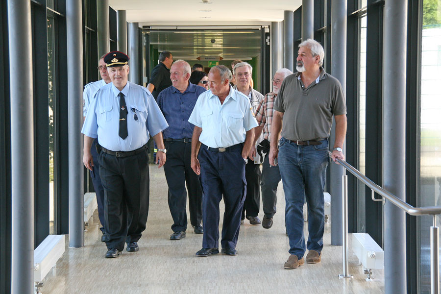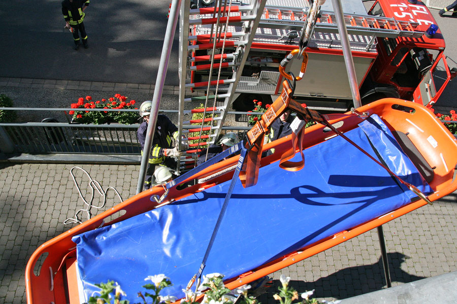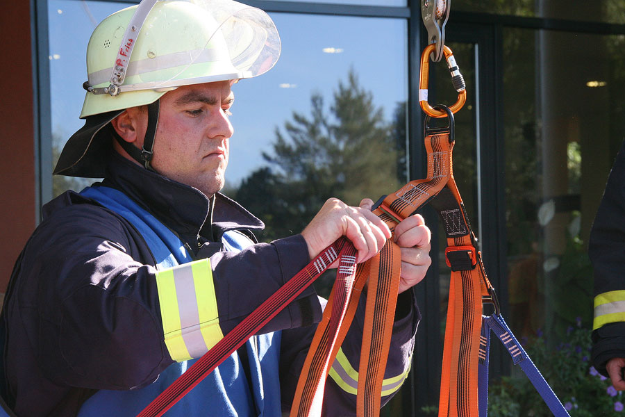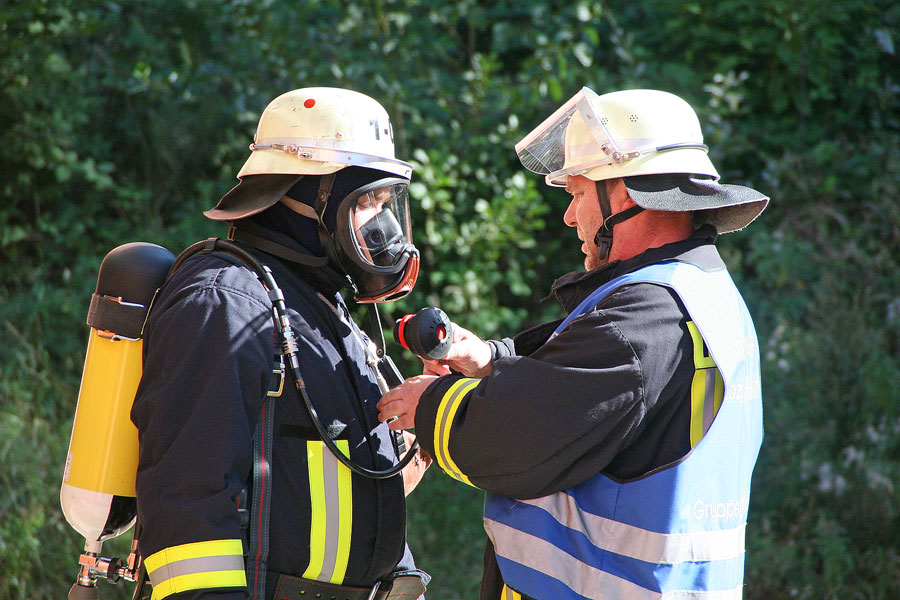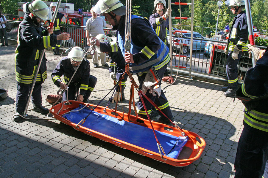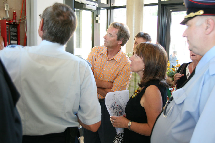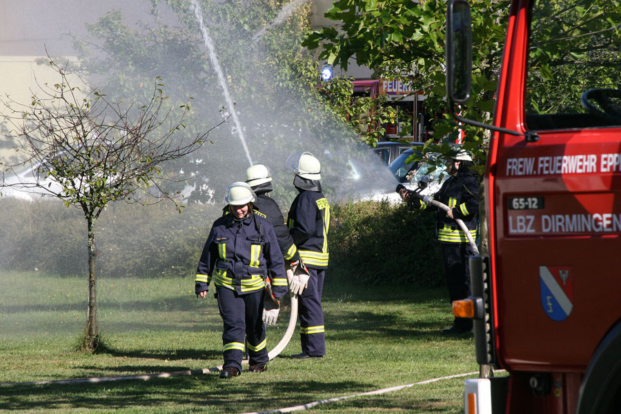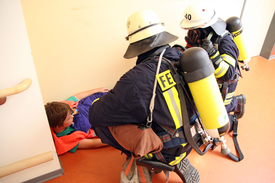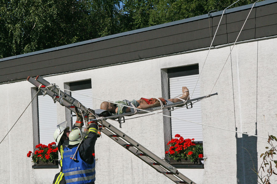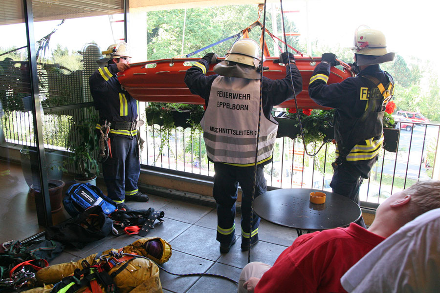 Für die Bewohnerinnen und Bewohner des psychiatrischen Pflegeheims in Habach war es eine willkommene Abwechslung an diesem sonnigen Samstag Nachmittag: Nachdem von der Leitstelle Alarm ausgelöst worden war, rückten in kurzen Abständen Einsatzkräfte aus allen Löschbezirken der Gemeinde Eppelborn mit Blaulicht und Martinshorn zur diesjährigen Jahresabschlussübung an. Ein Waldbrand im rückwärtigen Bereich der Wohngebäude sollte bekämpft werden, lautet die Aufgabe für einen Teil der angerückten Mannschaft. Funkenflug und eine starke Rauchentwicklung erschwerten die Aufgabe. Während mit mehreren Rohren der Löschangriff vorgenommen wurde, mussten mehrere verletzten Personen aus dem verrauchten Gebäude gerettet werden. Mit Atemschutzgeräten ausgerüstet, drangen mehrere Trupps in das Gebäude vor und suchten die Räumlichkeiten ab. Mehrere Personen, alle gemimt von Statisten der Jugendfeuerwehr, mussten mit Fluchthauben aus dem Gefahrenbereich gerettet werden. [left][cmsimg]4586[/cmsimg][/left] Eine weitere Person galt es, vom Dach eines der eingeschossigen Gebäude mit einem Leiterhebel zu retten. Gleichzeitig musste eine Wasserversorgung vom Löschteich bis zur Einsatzstelle aufgebaut werden. Die ganzen Aufgaben, die schnellstens und zum Teil parallel bewältigt werden mussten, wurden von Einsatzleiter Frank Kartes vom Einsatzleitwagen koordiniert. Auch die "Projektgruppe Absturzsicherung" demonstrierte ihren Ausbildungsstand bei der Rettung einer Person aus dem 1. Obergeschoss des Hauptgebäudes. Diese sollte mit einer Schleifkorbtrage über den Balkon gerettet werden. Bevor die Trage hochgezogen werden konnte, musste die große Schiebleiter in Stellung gebracht werden. Beim Aufbau mit Leinen und Karabinern musste jeder Handgriff sitzen. Die neue Bürgermeisterin Birgit Müller-Closset konnte sich erstmals als Chefin der Wehr einen Überblick über das Leistungsspektrum ihrer Feuerwehr verschaffen. Wehrführer Hermann Josef Recktenwald führte sie zusammen mit den Ortsvorstehern der Gemeinde, dem Kreisbrandinspekteur Werner Thom und dem Landesbrandinspekteur a.D. Hans-Jürgen Olliger, die als Ehrengäste die Übung verfolgten, zu den einzelnen Stationen und erklärte ausführlich die duchgeführten Tätigkeiten. [right][cmsimg]4606[/cmsimg][/right] "Für mich ist eine eine große Ehre, als neue Bürgermeisterin und Chefin der Wehr bei dieser Übung dabei zu sein", erklärte Birgit Müller-Closset bei der Nachbesprechung im Habacher Bürgerhaus. Eine Einsatzbereitschaft 24 Stunden pro Tag an 365 Tagen im Jahr sei für ein Ehrenamt eine großartige Leistung. "Ich sehe die Arbeit der Feuerwehr als sehr entscheidend an und werde Sie darin unterstützen", versprach die Bürgermeisterin. Auch Wehrführer Hermann Josef Recktenwald bedankte sich für den reibungslosen Einsatz der rund 100 Einsatzkräfte, die mit 15 Fahrzeugen angerückt waren. Lediglich im Bereich der Wasserversorgung aus dem Löschteich hätten sich Probleme gezeigt, die bei einer Begehung in der nächsten Woche angegangen werden. Das Pflegeheim in Habach mit seinen über 200 Bewohnern mit psychischen Behinderungen stellt im Einsatzfall eine besondere Herausforderung für die Feuerwehr dar. Nicht nur durch den weitläufigen Gebäudekomplex, sondern vor allem durch die besondere Betreuungsbedürftigkeit der Bewohner ist ein Einsatz aufwändig und personalintensiv. Regelmäßige Übungen an diesem Objekt dienen auch dazu, den Bewohnern die Angst vor der Feuerwehr zu nehmen. Zudem finden in regelmäßigen Abständen durch die Feuerwehr Brandschutzschulungen für die Pflegekräfte statt.