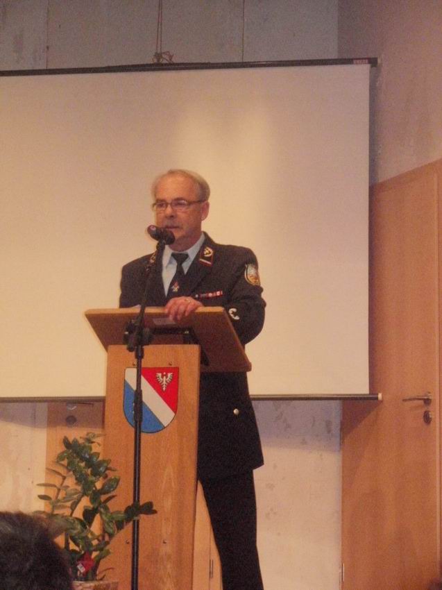 Seine Rede begann Wolfgang Braun mit einem Gedicht im Bezug auf die Feuerwehr. In seinen Ausführungen ging Braun auf die Tätigkeiten des Löschbezirkes während des Jahres ein. Er bedankte sich für die geleisteten Stunden der Kameradinnen und Kameraden während Einsätzen und Übungen. Auch bei den Frauen und Partnerinnen bedankte sich der Löschbezirksführer für das erbrachte Verständnis gegenüber dem zeitraubenden "Hobby" Feuerwehr.