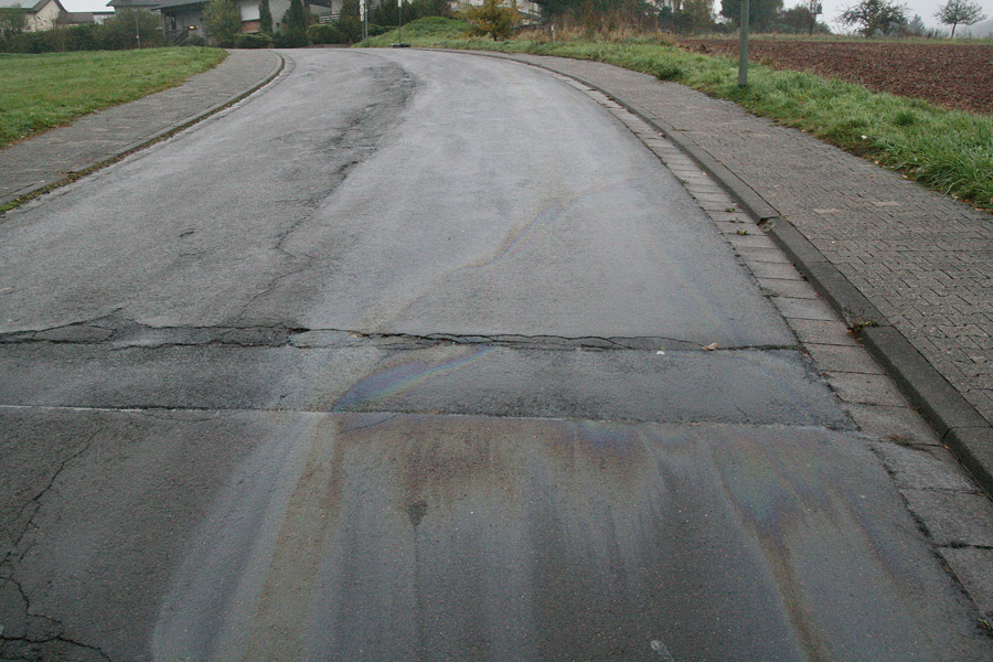 Zu einer bis zu drei Meter breiten Dieselspur, die sich von der Kreuzung "Schloßstraße" – "Auf Drei Eichen" bis zur Siedlung "In der Waldwies" zog, wurde die Feuerwehr am Morgen des 06. November 2011 alarmiert.