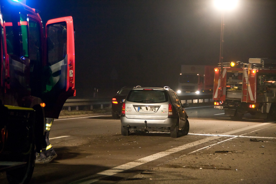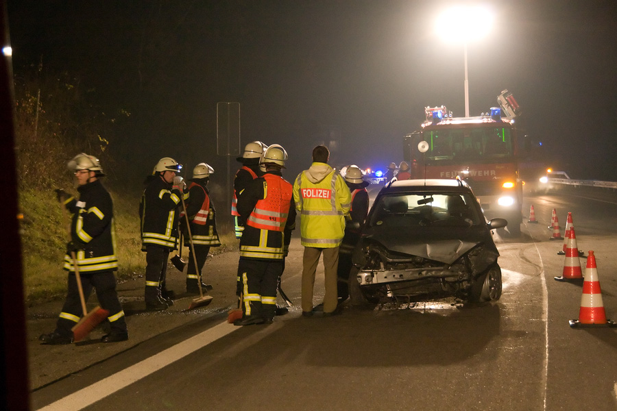 "Fahrzeugbrand auf der Autobahn" lautet die Alarmmeldung, mit der am Abend des 13. November 2012 gegen 21:13 Uhr die Löschbezirke Eppelborn und Bubach-Calmesweiler zum Einsatz gerufen wurden. Kurz vor der Anschlussstelle Sotzweiler hatte der Fahrer eines Ford Focus, der in Fahrtrichtung Trier unterwegs war, in einer langezogenen Rechtskurve die Kontrolle über sein Fahrzeug verloren und war in die Mittelleitplanke gekracht. Er kam schließlich auf der rechten Fahrspur zu stehen. Da es am Anfang zu einer starken Rauchentwicklung kam, wurde von einem Brand des Fahrzeugs ausgegangen und neben Polizei und Rettungsdienst auch die Feuerwehr alarmiert. Noch vor dem Eintreffen von Polizei und Feuerwehr, so schilderten es Zeugen, kam es zu einer brenzligen Situation: Ein weiteres Fahrzeug näherte sich mit hoher Geschwindigkeit der Unfallstelle und konnte gerade noch rechtzeitig der noch ungesicherten Unfallstelle ausweichen. Dabei kam das Fahrzeug ins Schleudern und drehte sich mehrmals um die eigene Achse, ohne jedoch mit den Leitplanken zu kollidieren. Der Fahrer setzte daraufhin seine Fahrt fort. Beim Eintreffen der Feuerwehr stellte sich schnell heraus, dass der Qualm wohl vom Kühlwasser herrührte, welches auf dem heißen Motorblock verdampfte. Die Einsatzkräfte unterstützten die Polizei bei der Absicherung, leuchteten die Unfallstelle aus und klemmten die Fahrzeugbatterie ab. Der Verkehr konnte einspurig an der Unfallstelle vorbeigeleitet werden. Zum Beseitigen von Trümmerteilen musste die Fahrtrichtung Trier aber kurzzeitig voll gesperrt werden. Der 46jährige Fahrer erlitt bei dem Unfall schwere Verletzungen und wurde vom Rettungsdienst zur weiteren Behandlung in ein Krankenhaus transportiert. An dem Unfallfahrzeug entstand erheblicher Sachschaden. Nach Polizeiangaben hatte der Mann versucht, einem Tier auf der Fahrbahn auszuweichen.