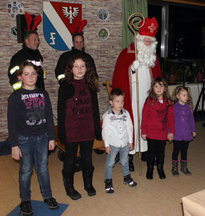 Nach einer kurzen Begrüßung durch den Löschbezirksführer Rainer Becker und den Vertreter der Gemeinde Herrn Wilms , kam das Highlight für die anwesenden Kinder, der Nikolaus. Nachdem ein paar Kinder dem Nikolaus ein Gedicht vorgetragen hatten und gemeinsam Weinachtslieder gesungen wurden, verteilte der Nikolaus noch eine Kleinigkeit an die Kinder.