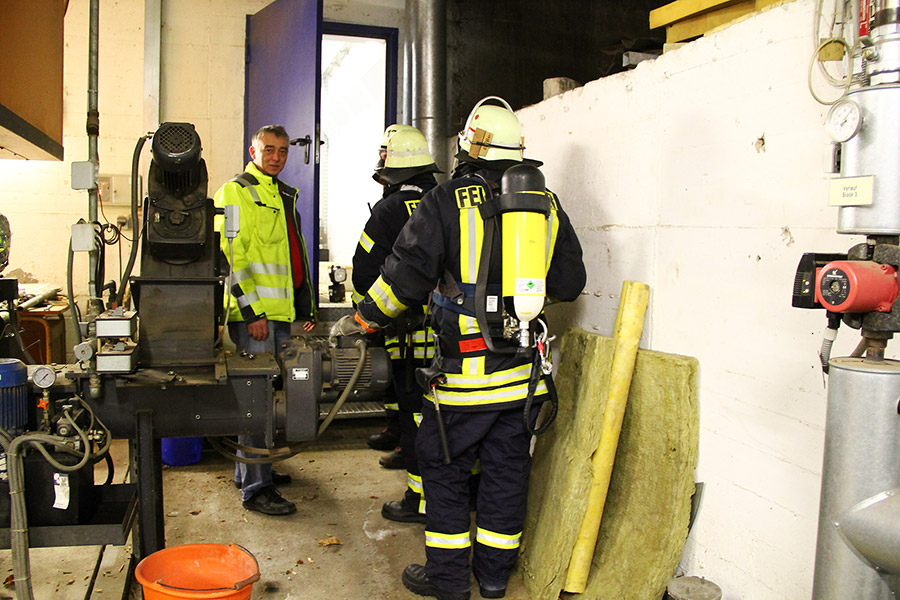 Da er aufgrund der starken Rauchentwicklung keine Möglichkeit hatte, selbst nach der Ursache zu suchen, alarmierte er umgehend die Feuerwehr. Nur wenig später rückten die Löschbezirke Wiesbach, Eppelborn und Habach mit mehreren Löschfahrzeugen an. Unter schwerem Atemschutz untersuchten die Einsatzkräfte Heizungsraum, Spänebunker sowie die Förderschnecke der Hackschnitzelheizung, konnten aber keinen Brandherd ausmachen. Zwischenzeitlich hatte auch die Rauchentwicklung spürbar nachgelassen.