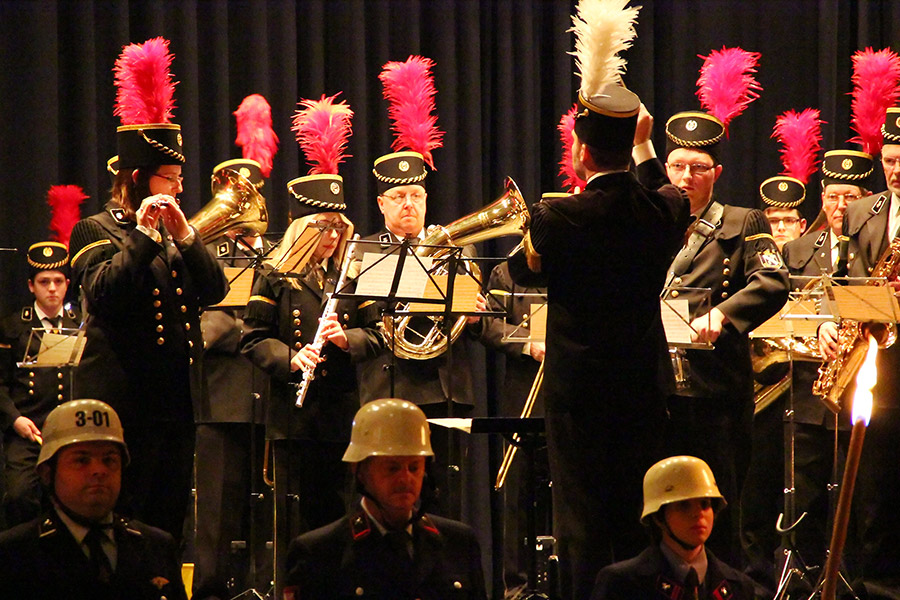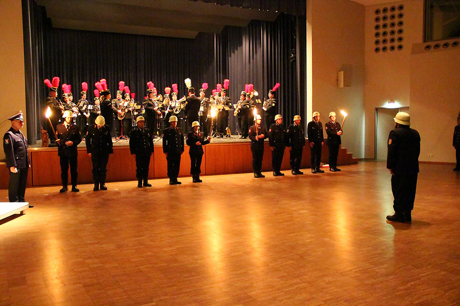 Sehr bewegend war die Zeremonie die zum Abschluss der offiziellen Verabschiedung zu Ehren von Hermann-Josef Recktenwald zelebriert wurde. Der Instrumentalverein unter Leitung von Christoph Schorr sorgte zusammen mit Wehrleuten aus der Gemeinde beim großen Zapfenstreich für Gänsehautgefühl und für so manche verdrückte Träne in den Reihen der Zuschauer. Dass die Feuerwehr diese Zeremonie gewählt hatte, um ihren Wehrführer in den wohlverdienten Ruhestand zu entlassen zeigt, dass man die fachliche und menschliche Kompetenz von Hermann-Josef Recktenwald zu würdigen wusste.