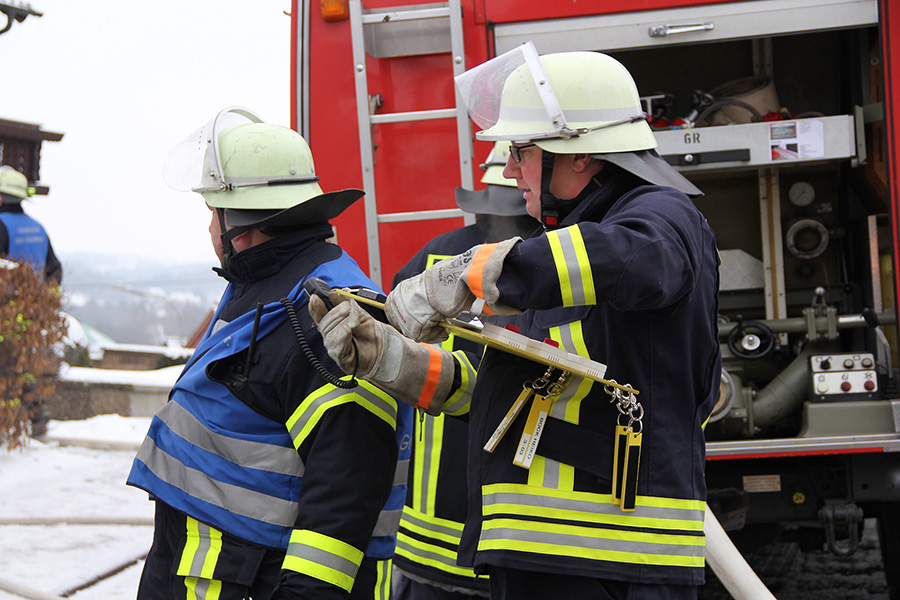 [right][cmsimg]4836[/cmsimg][/right] Probleme bereitete das Aufsuchen des nächstgelegenen Hydranten, der durch Schnee und Eis verdeckt war. Hier bewährte sich das vom Löschbezirk Dirmingen erstellte Hydrantenverzeichnis, in dem alle Hydranten fotografisch erfasst sind. Dadurch konnte die Wasserversorgung trotz der widrigen Umstände schnell hergestellt werden.