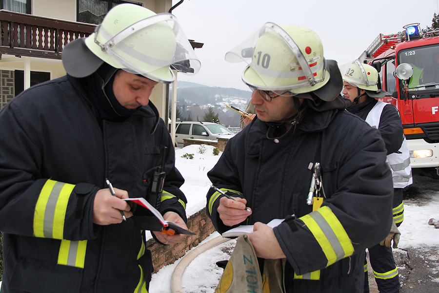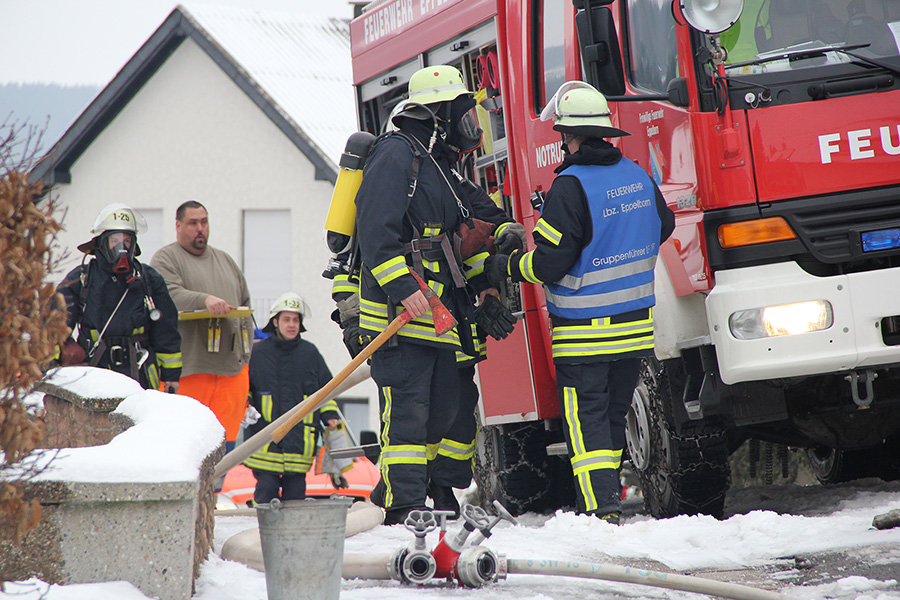 [left][cmsimg]4827[/cmsimg][/left] Die Anfahrt der Löschfahrzeuge wurde durch die Witterungsbedingungen erschwert: In der Nacht und am Morgen hatte Eisregen eingesetzt und für überfrorene Straße gesorgt. Ein Streuwagen des Gemeindebauhofs war zufälligerweise gerade in einer Nachbarstraße unterwegs, als die Alarmierung der Feuerwehr über Funkmeldeempfänger erfolgte. Die Besatzung, zufällig ebenfalls Feuerwehrleute, fuhren sofort zur gemeldeten Einsatzstelle und streuten Fahrbahn und Gehweg für die anrückenden Fahrzeuge.