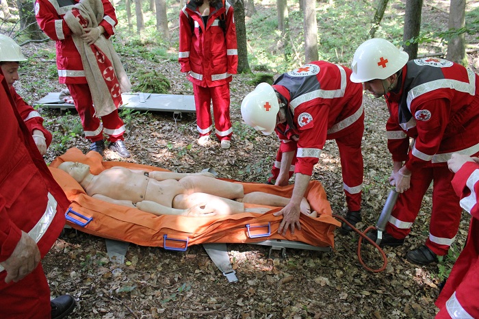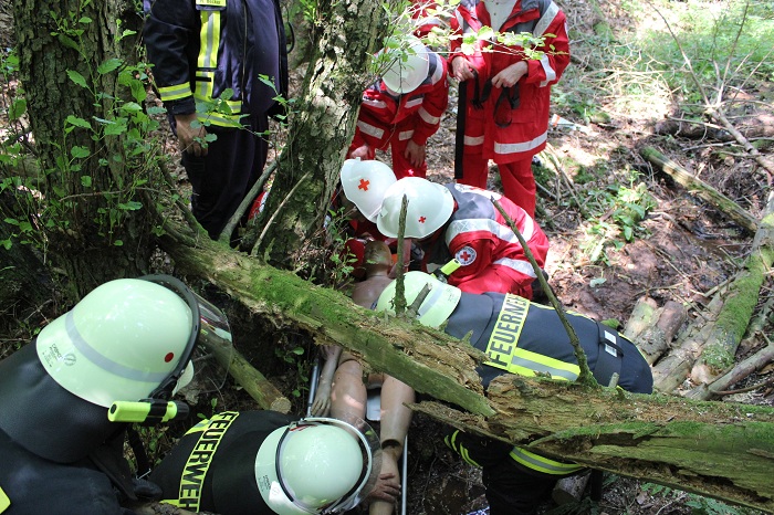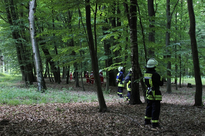 20 Minuten nach Beginn der Personensuche konnten man bereits Hilferufe im Wald wahrnehmen. Daraufhin wurde die Suchkette in Richtung der Rufe ausgerichtet und so konnten schnell zwei verletzte Personen in einem tiefen Graben ausfindig gemacht werden.
