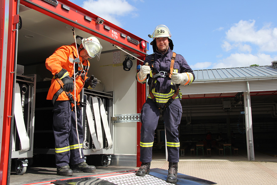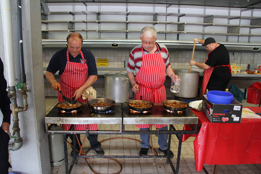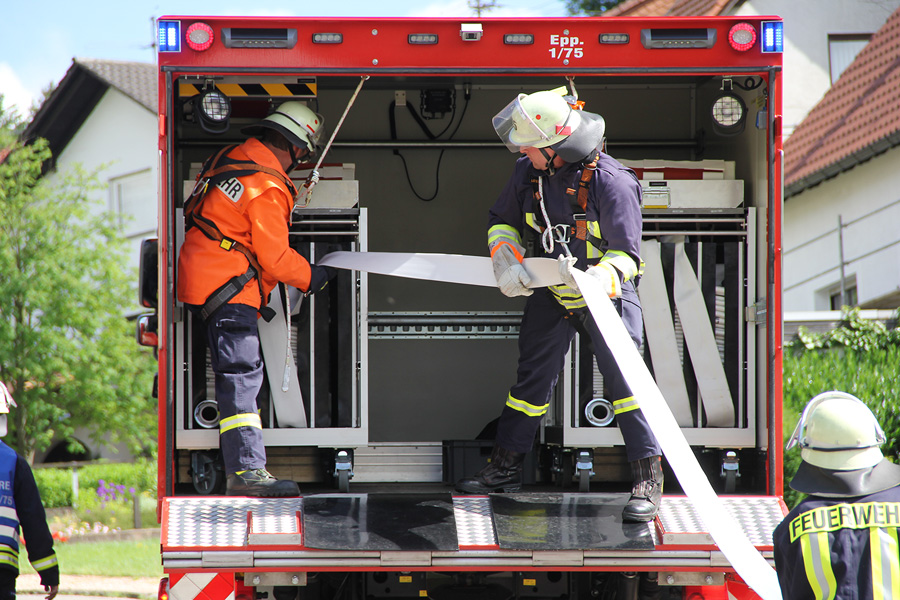 Keine schlechte Zeit, wie Löschbezirksführer Dr. Frank Schwan ein der kurzen Nachbesprechung am Ende der Übung feststellte. Trotzdem muss das Verlegen der Schlauchleitung mit dem Gerätewagen Logistik weiter geübt werden. Dann konnten die Kräfte wieder aufgetankt werden: Das Küchenteam hatte eine kräftige Stärkung vorbereitet.