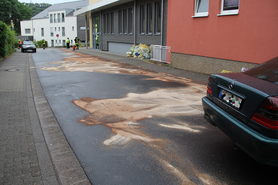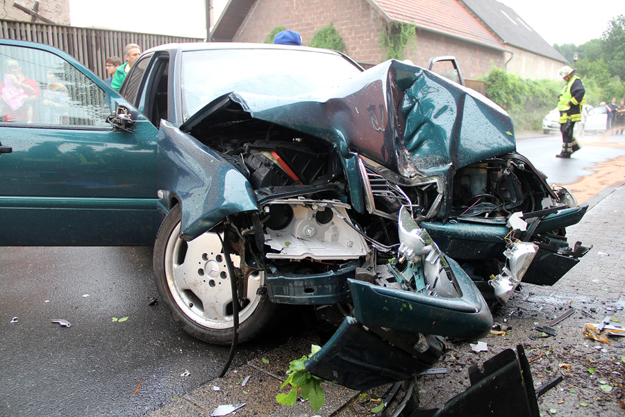 Auslaufende Betriebsstoffe hatten sich auf einer größeren Fläche verteilt und wurde mit Bindemitteln aufgenommen. Beide Fahrzeuginsassen wurden bei dem Unfall leicht verletzt und musste zur weiteren Untersuchung in ein Krankenhaus gebracht werden. An dem Unfallfahrzeug entstand Totalschaden.