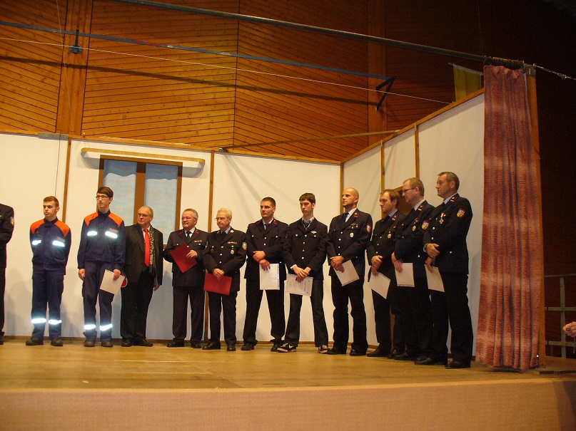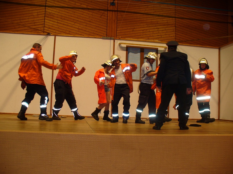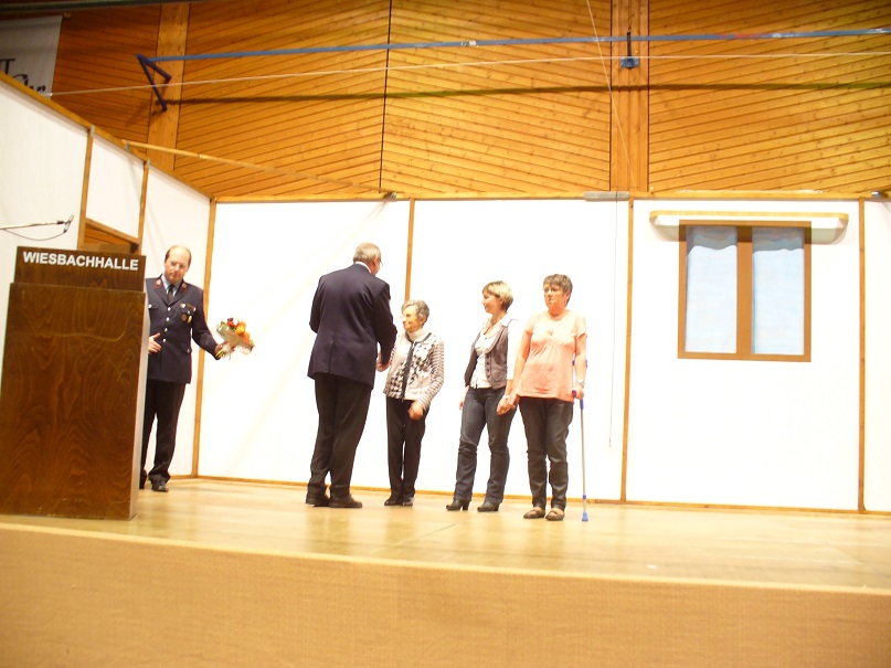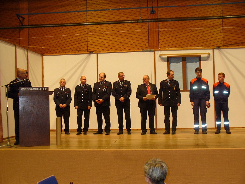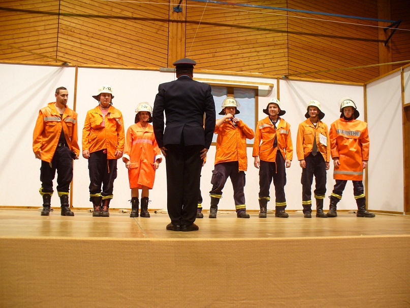 Am 05. Oktober 2013 fand der diesjährige Familienabend im Löschbezirk Wiesbach statt. Löschbezirksführer Günther Neu konnte neben zahlreichen Mitgliedern der aktiven Abteilung und Mitgliedern der Alterwehr nebst Partnerinnen auch den Ortsvorsteher von Wiesbach Klaus Herold, Michael Sticher vom Kreisfeuerwehrverband, den stellvertretenden Wehrführer der Gemeinde Eppelborn Christian Holz und als Vertreter der Bürgermeisterin den 1. Beigeordneten Berthold Schmidt begrüßen. Bürgermeisterin Birgit Müller-Closset und der Wehrführer der Gemeinde Eppelborn Klaus Theis ließen sich entschuldige. Beide waren in Urlaub. Nach der Begrüßung der Anwesenden ging Löschbezirksführer Neu kurz auf die größten Herausforderungen des Löschbezirks ein, die in dem Erhalt und Ausbau der Jugendwehr zu sehen ist. In diesem Zusammenhang bedankte er sich beim Jugendbetreuer Uwe Neu für das große Engagement und Hingabe, die er in der Jugendarbeit zeigt. Sein Dank ging aber auch an die Alterswehr, ohne deren tatkräftige Mithilfe die gesellschaftlichen Aktivitäten des Löschbezirks in der Form nicht möglich wäre. Nicht zu vergessen wäre aber auch die Zusammenarbeit mit dem stellvertretenden Löschbezirksführer Stephan Rein, der ihm stets eine große Unterstützung ist und er ihm dafür zu Dank verpflichtet sei. Ein besonderes Dankeschön ging an die Partnerinnen der Feuerwehrangehörigen, die für die oft zeitraubenden Aktivitäten der Feuerwehr ein großes Verständnis aufbringen müssen. Klaus Herold ging in seinem Grußwort auf die doch recht lange Geschichte des Löschbezirks Wiesbach ein, der sich seit 1885, mit einer stetig anwachsenden Anzahl von Aufgaben, um die Sicherheit der Mitbürger kümmert. Auch zeige die jetzige Anzahl von bereits 21 Einsätzen im Jahr 2013 von der großen Einsatzbereitschaft und der Notwendigkeit eines funktionierenden Löschbezirks. Die Einsatzbereitschaft werde durch eine Vielzahl von Übungen, Lehrgängen unter anderem von den Mitgliedern der Feuerwehr gesichert und zeige das große Engagement der Aktiven, was sich auch in Zusatzaufgaben wie Kleiderkammer der Feuerwehr und Stabsraum der Gemeinde, welche durch Mitglieder des Löschbezirk Wiesbach betrieben werden, widerspiegelt. Zu guter Letzt konnte der stellvertretende Wehrführer der Gemeinde Eppeborn noch folgende Ehrungen und Beförderungen vornehmen: [list] [*] In die aktive Abteilung übernommen wurden Ronny Lambert und Leon Cichon. [*] Zum Oberfeuerwehrmann befördert wurden Andreas Augstein, Thomas Hofstetter, Mikel Kani, Eric Maurer und Kai Weniger. [*] Zum Hauptfeuermann befördert wurde Oliver Kiefer. [*] Zum Oberlöschmeister befördert wurde Hr Uwe Neu. [*] Zum Hauptlöschmeister befördert wurde Hr Dirk Kleer [*] Für 35 Jahre Mitgliedschaft in der Feuerwehr geehrt wurden Armin Schmitt und Guido Schmitt. [*] Für 40 Jahre Mitgliedschaft in der Feuerwehr geehrt wurde Peter Jochum [*] Und für 60 Jahre Mitgliedschaft in der Feuerwehr geehrt wurden Engelbert Altmeyer und Herrmann Rothenbusch [/list] Anschließend begann der gemütliche Teil des Abends, der leider durch eine Alarmierung unterbrochen wurde. Der Einsatz konnte nach etwa 1 1/2 Stunden abgeschlossen werden, so dass der Abend seine geplanten Gang nehmen konnte. Ein Highlight des Abends waren wieder einmal 2 kurze Aufführungen, die von Aktiven mit viel Freude dargeboten wurde.