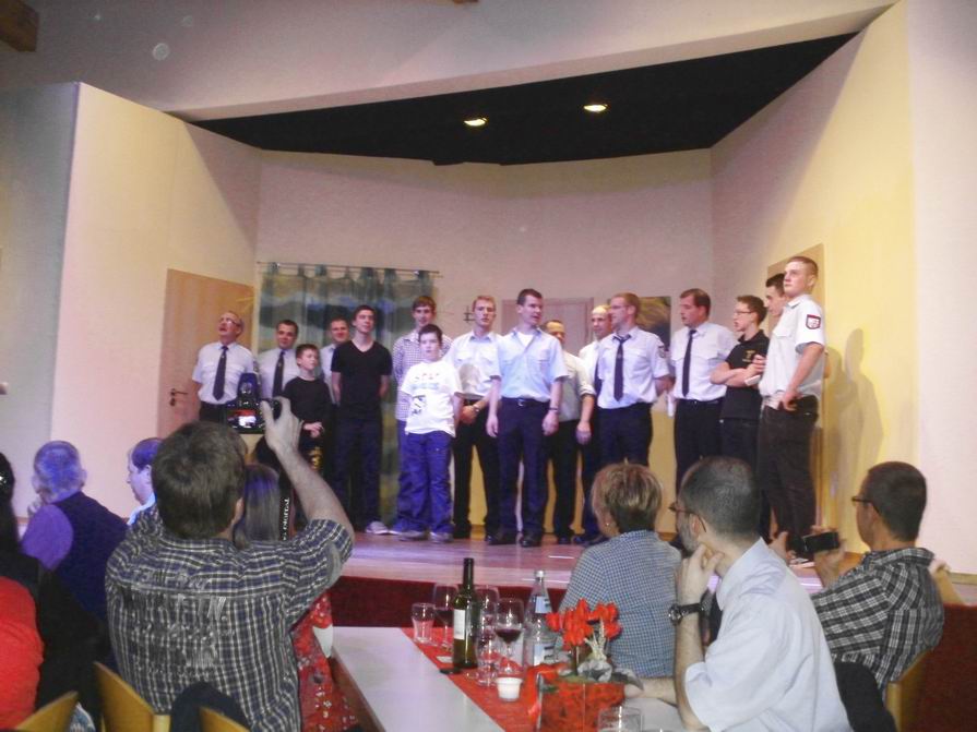 Nach einem reichhaltigen Abendessen sorgten Vorführungen der Jugend- und aktiven Wehr für Unterhaltung der Gäste in der Halle. Die Gruppe "Enjoy" sorgte für den musikalischen Rhythmus an diesem geselligen Abend. So wurde im Rahmen der "Feuerwehrfamilie" bis tief in die Nacht getanzt und gefeiert.