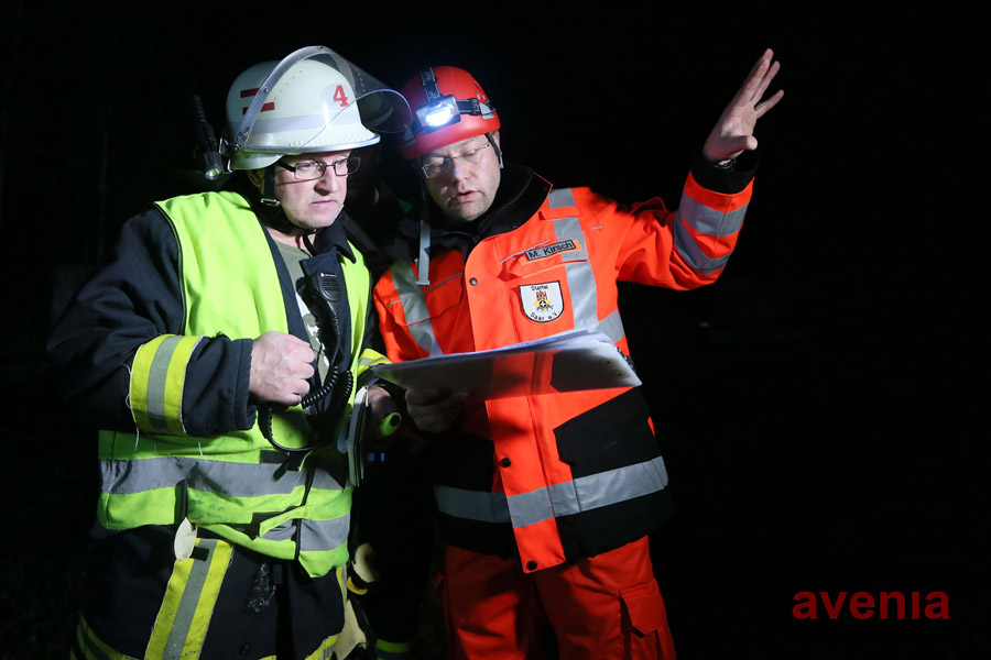 Bei der Suche im Waldstück unterstützte die Feuerwehr die Arbeit der Suchhunde mit einer Menschenkette und mehreren Wärmebildkameras. Zur besseren Koordinierung der Suchmaßnahmen entschied sich der ebenfalls anwesende Kreisbrandinspekteur zur Alarmierung der Technischen Einsatzleitung mit ihrem in Ottweiler stationierten Einsatzleitwagen. Mit zu dem Team des Einsatzleitwagens gehört auch der stellvertretende Löschbezirksführer Stephan Rein aus dem Löschbezirk Wiesbach, der gegen 20:11 Uhr alarmiert wurde.