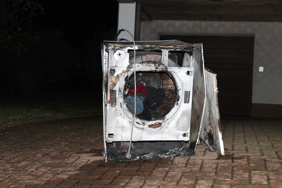 Der Trockner wurde anschließend zu weiteren Nachlöscharbeiten ins Freie gebracht. Der betroffene Raum sowie der Vorraum wurden durch den Brandrauch in Mitleidenschaft gezogen. Mit einem Überdrucklüfter wurde der Brandrauch anschließend aus den betroffenen Räumlichkeiten gedrückt.