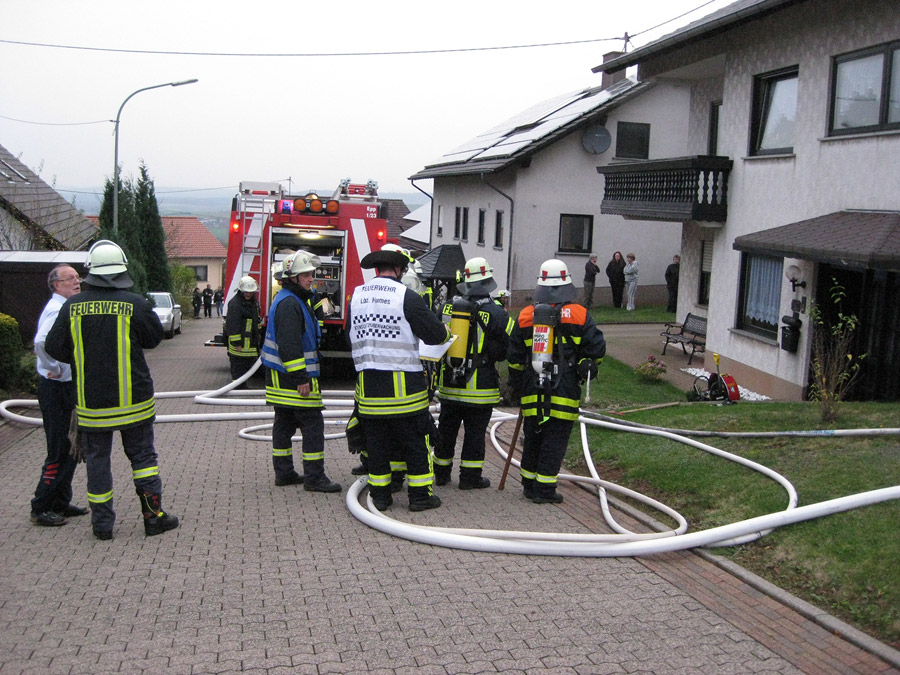 Die Nachbarin, welche die Frau eines aktiven Feuerwehrmitgliedes ist hatte zuvor schwarzen Rauch aus einem Fenster im Erdgeschoss des Nachbarhauses dringen gesehen und unterrichtete sofort Ihren Mann. Dieser eilte zum Nachbarhaus um die Bewohner vor der Gefahr zu warnen, welche daraufhin erst auf den Brand im eigenen Haus aufmerksam wurden. Der Versuch, das Feuer selbst zu löschen scheiterte an der starken Verrauchung im betroffenen Raum.
