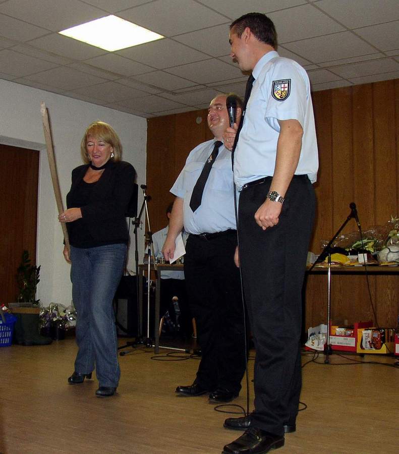 Im Anschluss wurde durch den Löschbezirksführer Markus Lambert, der ehemalige Löschbezirksführer Bernd Detzler und sein Ehefrau Nadja besonderer Dank ausgesprochen. Danke für 30 Jahre aktiven Dienst, und 12 Jahre Löschbezirksführung. Die Übernahme war damals alles andere als einfach und erforderte großen Mut und gebührt großer Anerkennung, Detzler hat das aus dem Löschbezirk das gemacht was er heute ist, im war es sehr wichtig die Zusammenarbeit mit den Nachbarlöschbezirken zu erhalten, und mit seinem Fachwissen trug er dazu bei das der Ausbildungsstand auf sehr hohem Niveau liegt.