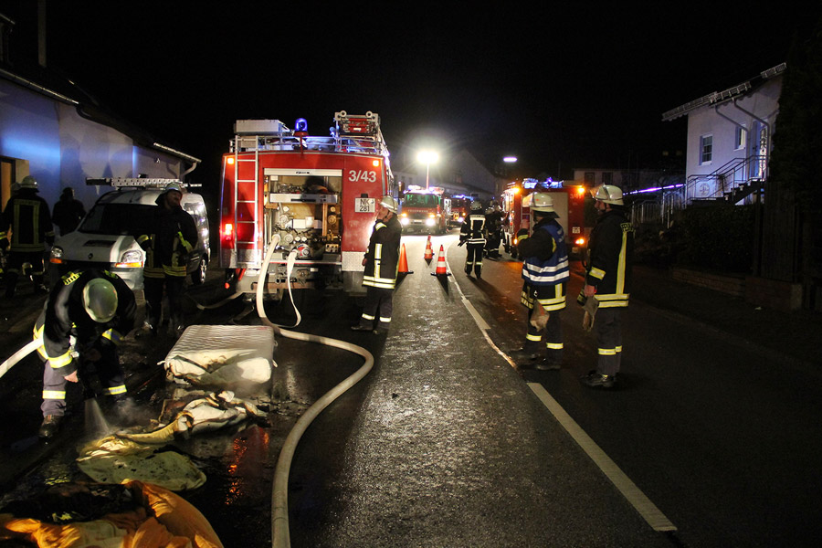 Die Löschbezirke Dirmingen und Eppelborn, die Drehleiter aus Illingen sowie ein Rettungswagen und die Polizei wurden daraufhin von der Leitstelle alarmiert. Beim Eintreffen der Feuerwehr hatte das Feuer von der Heizdecke bereits auf die Matratze und die Bettwäsche übergegriffen, das Obergeschoss war verraucht.