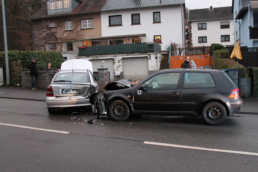 Ein mit zwei 45jährigen Personen besetzter VW Golf befuhr die Dirminger Straße in Fahrtrichtung Dirmingen. Aus bisher unbekannten Gründen kam es kurz vor dem Ortsausgang zu einer Kollision mit einem silberfarbenen Opel Astra welcher von einem 21jährigen Fahrzeugführer aus Wustweiler gelenkt wurde.
