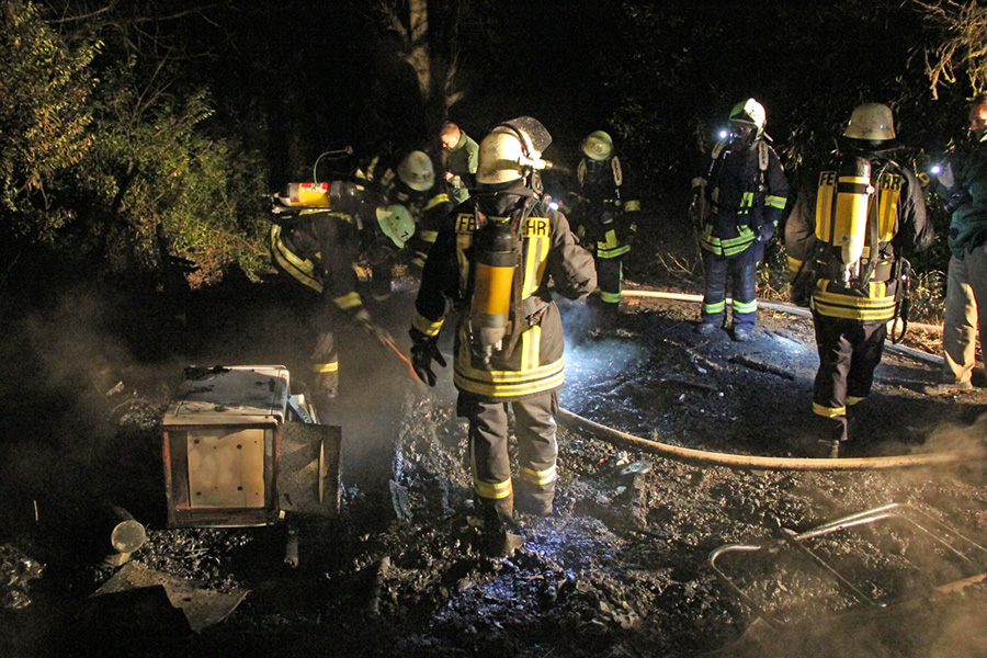 Völlig niedergebrannt ist eine Holzhütte in Humes am Abend des 12. Dezember 2014. Nachdem Anrufer…