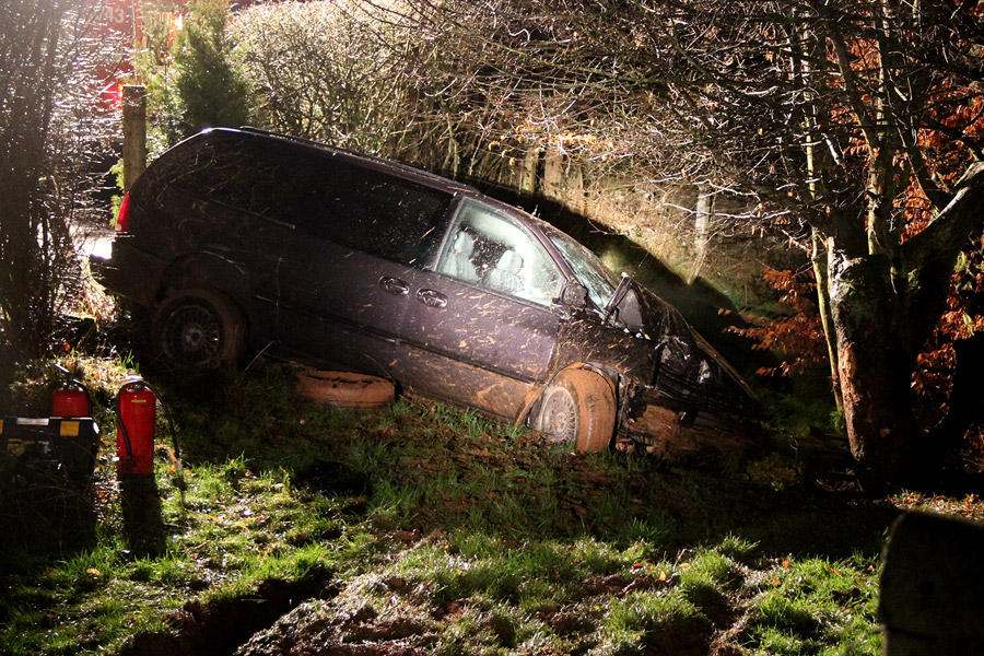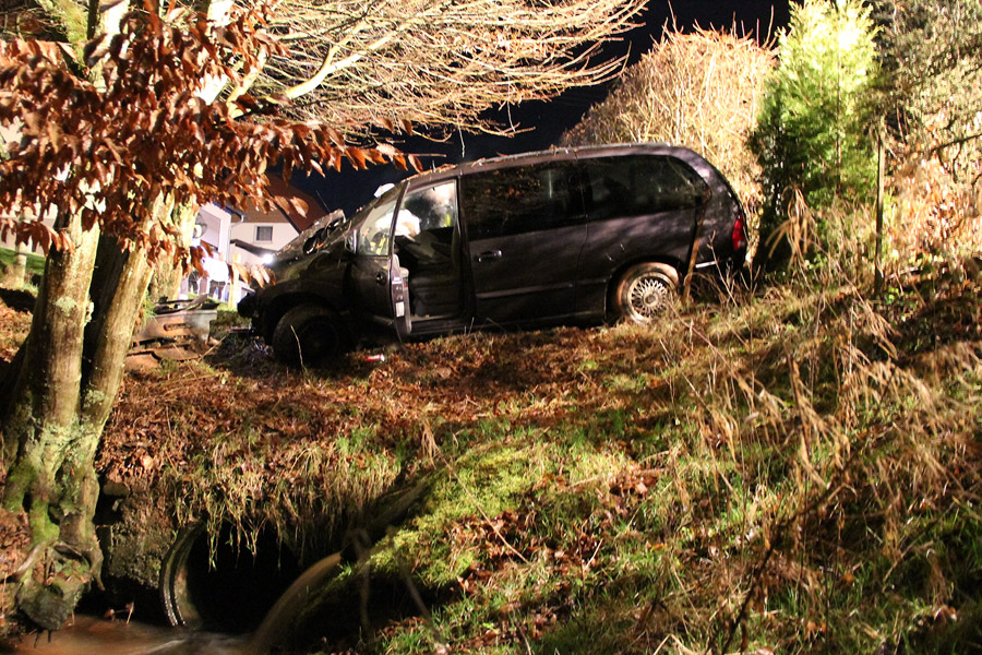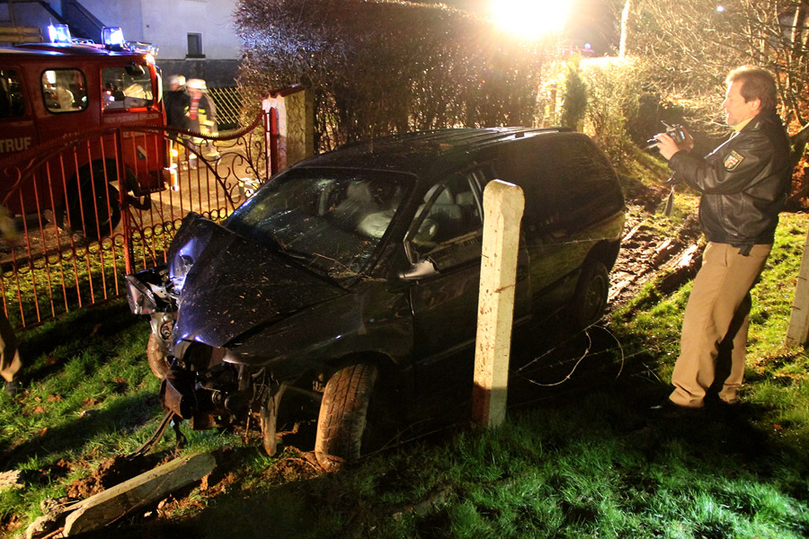 Die Eltern des Jungen wussten nichts von der Spritztour des Sohnes. An dem Chrysler Voyager, an dem nicht zugelassene luxemburgische Kennzeichen angebracht waren, entstand Sachschaden, ebenso wurde der Weidezaun des Anliegers und ein Baum beschädigt. Die Feuerwehr war mit rund 25 Einsatzkräften und zwei Fahrzeugen bis kurz vor Mitternacht im Einsatz.
