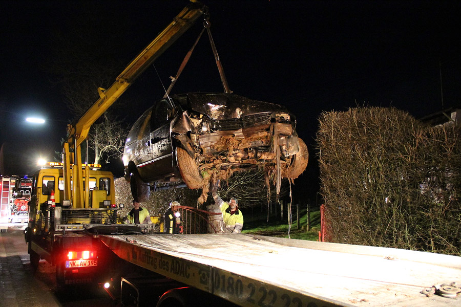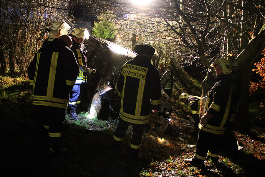 Die Einsatzkräfte leuchteten die Unfallstelle aus, sicherten die Unfallstelle gegen die Brandgefahr und unterstützten das Abschleppunternehmen bei der Bergung des Unfallfahrzeugs. Da nicht klar war, ob nicht noch eine weitere Person im Fahrzeug saß, suchte die Feuerwehr die Umgebung ab. Es konnten aber keine Spuren entdeckt werden, die auf einen Mitfahrer hinwiesen.