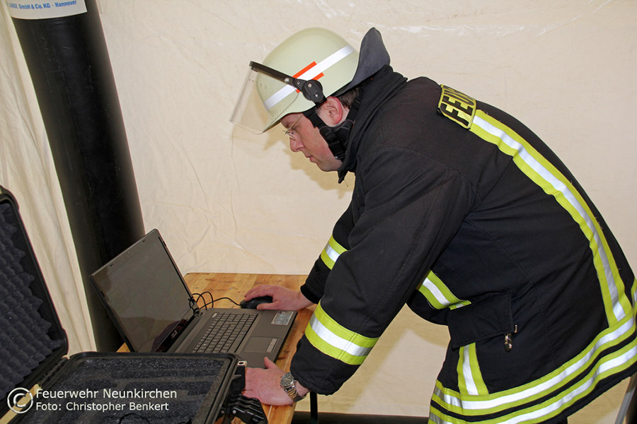 Auch der Neunkircher Bürgermeister Jörg Aumann und Kreisbrandinspekteur Werner Thom waren Teil der Einsatzleitung. Bürgermeister Aumann war bereits kurz nach der Alarmierung der Neunkircher Feuerwehr am Morgen an die EInsatzstelle gekommen. Im Bereitstellungsraum wurden zur Absicherung der Bombenentschärfung mehrere Löschfahrzeuge der Feuerwehr und Rettungswagen vorgehalten. Um die Versorgung der Einsatzkräfte mit warmen Getränken kümmerte sich das DRK.