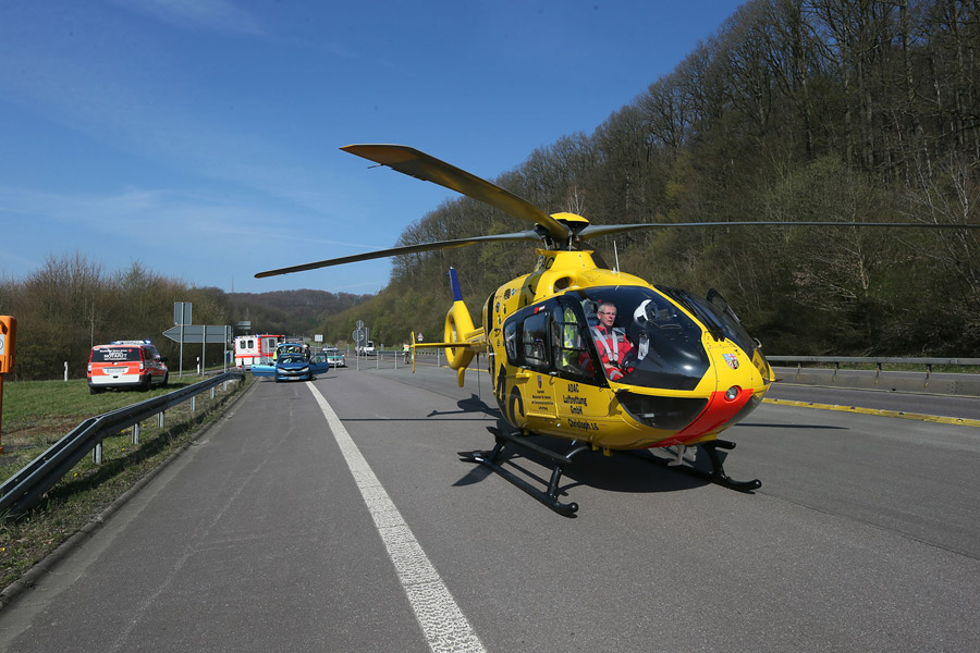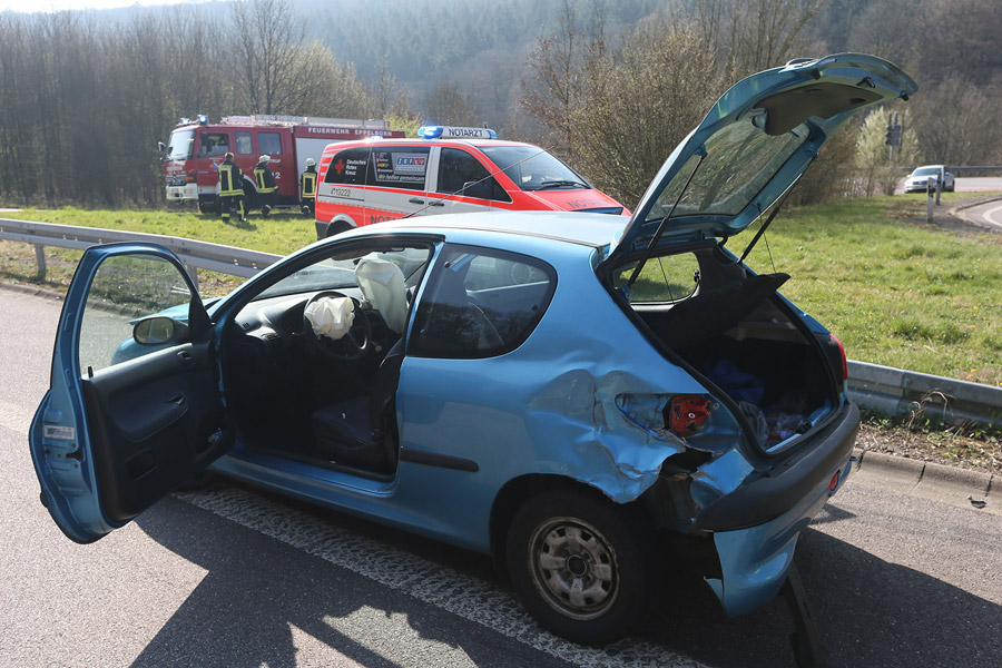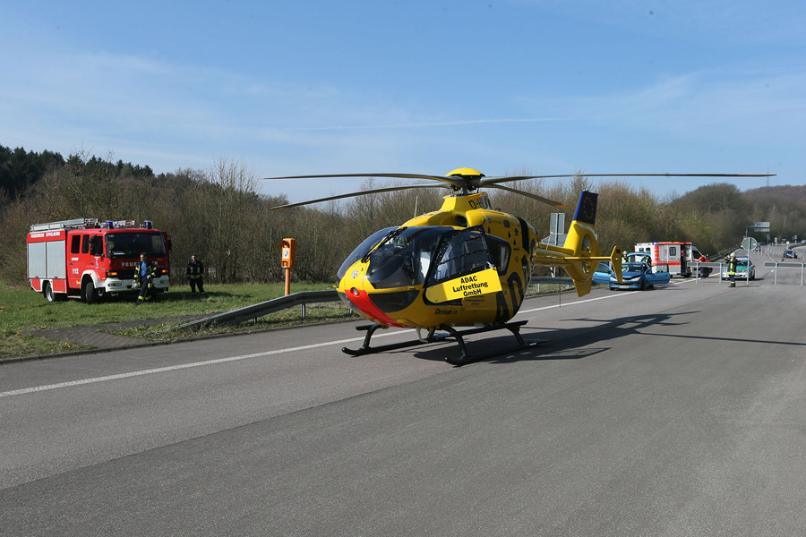 Feuerwehr und Rettungsdienst wurden am Morgen des 29. März 2014 zu einem schweren Verkehrsunfall auf die Autobahn A1 in Höhe der Anschlussstelle Eppelborn gerufen. Zwei Personen sollten dort nach einem Verkehrsunfall im Baustellenbereich in ihrem Wagen eingeklemmt sein, hatten Anrufer der Einsatzzentrale gemeldet. Die schickte aufgrund der Meldung deshalb neben Polizei, Rettungswagen und Notarzt auch die Feuerwehr aus Eppelborn und Bubach-Calmesweiler sowie den Rettungshubschrauber Christoph 16 zur Einsatzstelle. Bei Ankunft der Einsatzkräfte stellte sich der Unfall aber lediglich als harmloser Crash dar: Der mit zwei Personen besetzte Peugeot 206 war in Fahrtrichtung Saarbrücken unterwegs und kollidierte in Höhe der Anschlussstelle Eppelborn mit den Leitplanken. Beide Fahrzeuginsassen konnten sich nach dem Unfall aus eigener Kraft aus dem Fahrzeug befreien und wurden vom Rettungsdienst erstversorgt. Die Feuerwehr klemmte die Batterie am Unfallfahrzeug ab und stellte den Brandschutz sicher. Weitere Maßnahmen waren nicht erforderlich. Die Autobahn musste aufgrund der Landung des Rettungshubschraubers in Fahrtrichtung Saarbrücken voll gesperrt werden. Der Fahrer des Peugeot erlitt bei dem Unfall leichte Verletzungen und wurde in ein Krankenhaus zur weiteren Behandlung gebracht. Der Beifahrer blieb unverletzt.