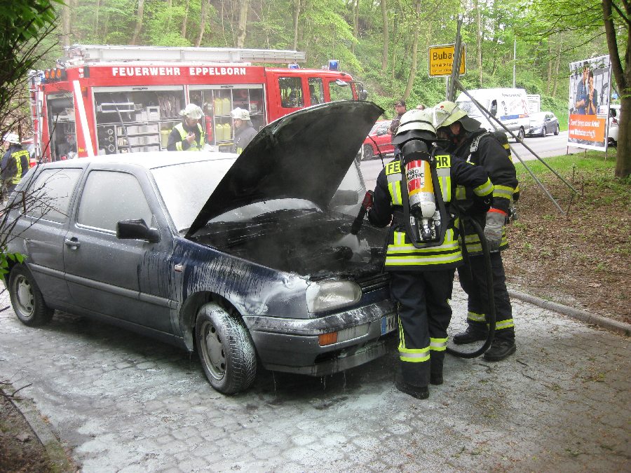 Am Vormittag des 22. April 2014 befuhr ein Autofahrer mit seinem Fahrzeug die B10 Richtung Bubach, als er auf Höhe der Shell-Tankstelle Rauch aus dem Motorraum bemerkte. Er steuerte den älteren VW-Golf von der Straße in die Zufahrt des Telekom Gebäudes und konnte die Motorhaube noch von innen entriegeln, als kurz darauf dichter schwarzer Rauch und erste Flammen aus dem Motorraum drangen. Er verlies daraufhin das Fahrzeug und rief über den Notruf die Feuerwehr.