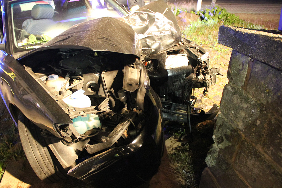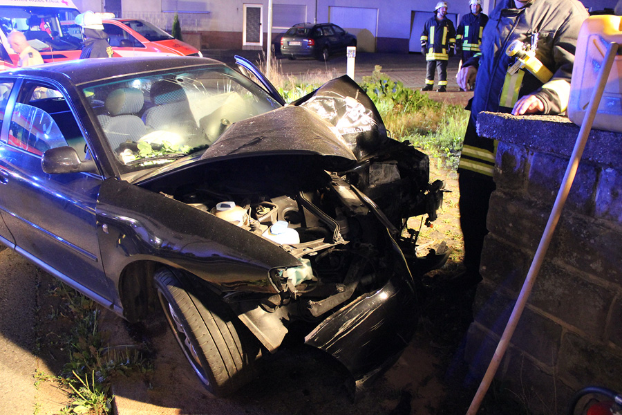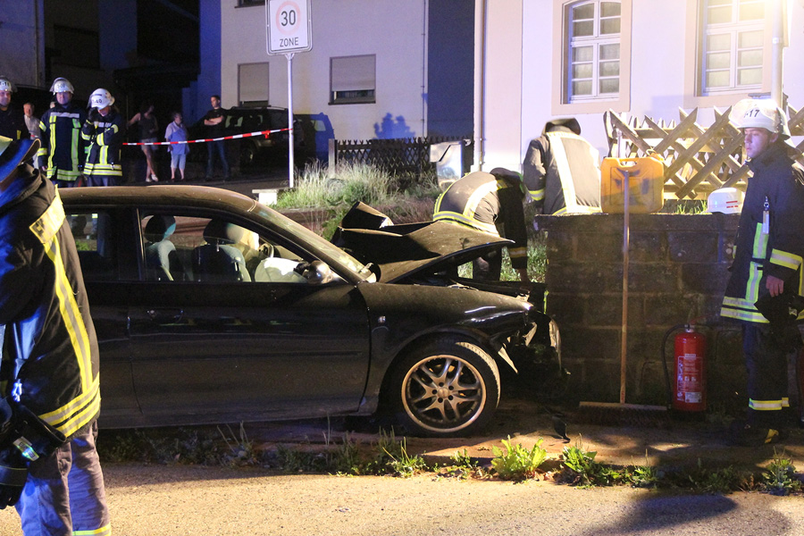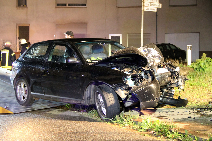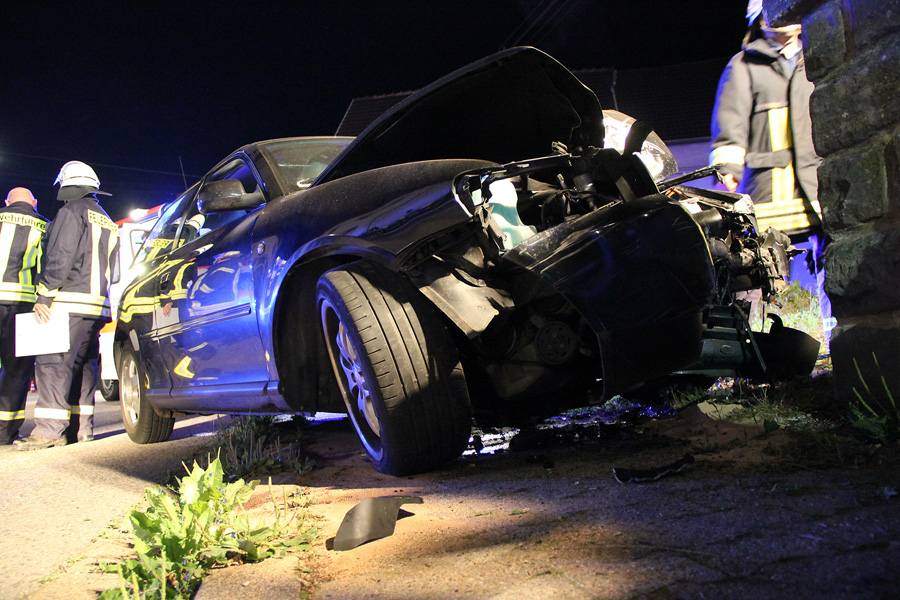 Neben der Feuerwehr, die mit 45 Kräften vor Ort war, waren auch die Polizei sowie vier Rettungswagen und zwei Notärzte im Einsatz. An dem Unfallfahrzeug entstand Totalschaden. Die vier Fahrzeuginsassen mussten zur weiteren Behandlung in umliegende Krankenhäuser gebracht werden, zwei von ihnen schweben nach ersten Erkenntnissen in Lebensgefahr.