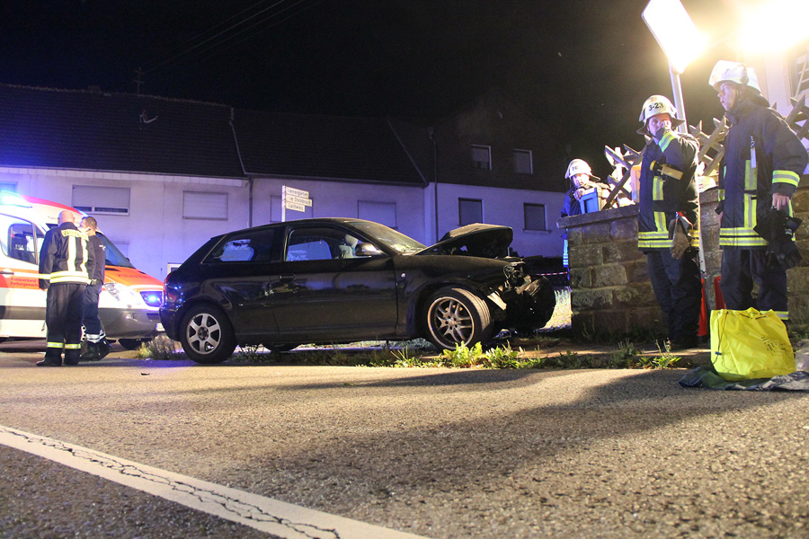 Ein schwerer Verkehrsunfall ereignete sich in der Nacht zum 20. Juli 2014 in der Ortsmitte von Dirmingen. Ein mit vier Personen besetzter Audi war aus Richtung Lebach kommend in einer Rechtskurve nach links von der Fahrbahn abgekommen und frontal gegen eine Mauerecke in der Illinger Straße geprallt.