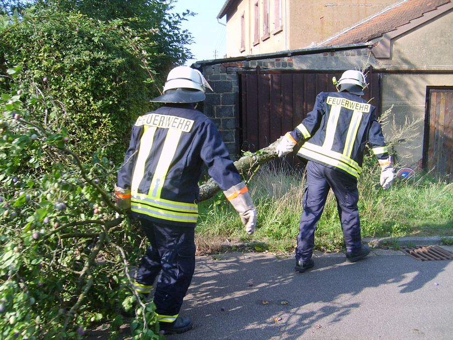 In der St. Laurentiusstraße musste die Feuerwehr am 30. Juli 2014 einen Ast entfernen, der ist 4 bis 5 Metern Höhe abgebrochen war und nun auf die Fahrbahn zu stürzen drohte. Ein weiterer Ast war bereits heruntergefallen, so dass Anwohner die Feuerwehr zu Hilfe riefen. Über eine Steckleiter konnten die Einsatzkräfte aus den Löschbezirken Bubach-Calmesweiler und Eppelborn den Ast aus dem Zwetschgenbaum lösen und im Anschluss mit einer Kettensäge zerkleinern. Die Überreste wurden am Fahrbahnrand abgelegt und die Fahrbahn grob gereinigt. Ursache für den Bruch des Astes waren vermutlich die zahlreichen daran hängenden Früchte in Verbindung mit den Unwettern der letzten Tage.