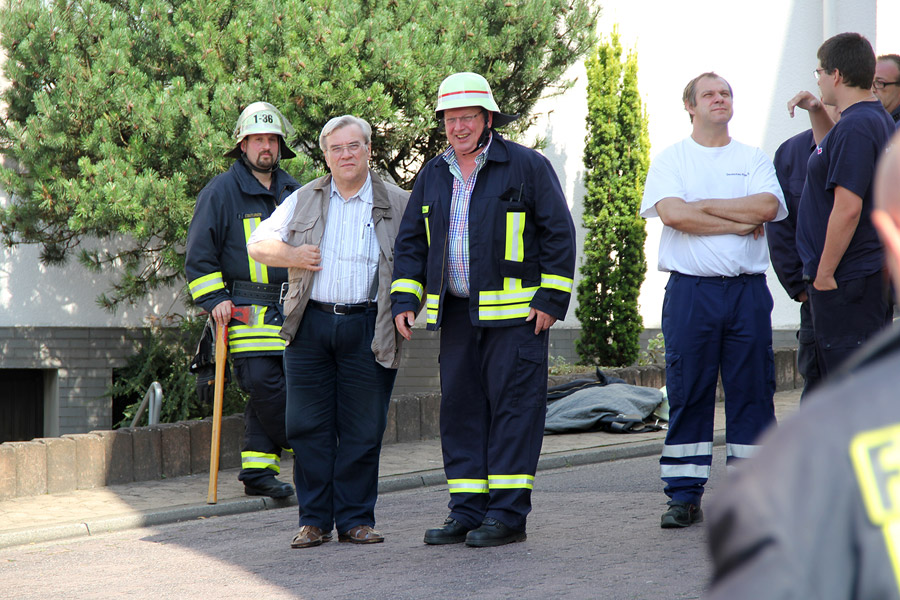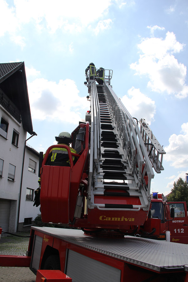 Kurz nach 15 Uhr meldeten Anrufer am 07. August 2014 der Einsatzleitstelle einen Wohnungsbrand in der Dirminger Straße in Eppelborn. Da aufgrund der Schilderung der Anrufer zunächst davon ausgegangen werden musste, dass sich noch Personen in der Wohnung aufhalten, wurden neben dem Löschbezirk Eppelborn auch die Einsatzkräfte aus Bubach-Calmesweiler, Dirmingen, Habach und Hierscheid gegen 15:08 Uhr mitalarmiert. Beim Eintreffen der ersten Einsatzkräfte stellte sich dann aber schnell heraus, dass sich die beiden Bewohner bereits selbst aus der Wohnung im 2. Obergeschoss des Wohn- und Geschäftshauses ins Freie retten konnten. Unter Atemschutzeinsatz drangen zwei Trupps durch das Treppenhaus in den Brandraum vor und konnten dort einen brennenden Sessel schnell löschen. Die darunterliegende Wohnung musste von der Feuerwehr im Beisein der Polizei geöffnet und mit der Wärmebildkamera kontrolliert werden, um eine Brandausbreitung auszuschließen. Auch über die Drehleiter aus Illingen, die ebenfalls im Einsatz war, wurde von außen nach möglichen weiteren Brandnestern gesucht. Einer der Bewohner musste vom Rettungsdienst mit dem Verdacht auf eine Rauchgasvergiftung in ein Krankenhaus gebracht werden. Es entstand Sachschaden in noch unbekannter Höhe. Die Kriminalpolizei hat die Ermittlungen zur Brandursache aufgenommen. Neben der Feuerwehr war auch die Polizei sowie der Rettungsdienst mit Notarzt und zwei Rettungswagen vor Ort im Einsatz.