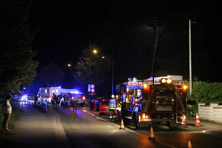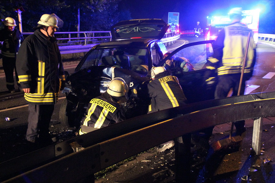 Gegen 23:57 Uhr wurden daraufhin Polizei, Rettungsdienst sowie die Feuerwehr aus den Löschbezirks Eppelborn, Habach und Hierscheid alarmiert. Die Einsatzkräfte richteten auf Anforderung der Polizei eine Vollsperrung ein und leuchteten die Unfallstelle aus. Auslaufende Betriebsstoffe wurden mit Bindemitteln aufgefangen und die Fahrzeugbatterien abgeklemmt.