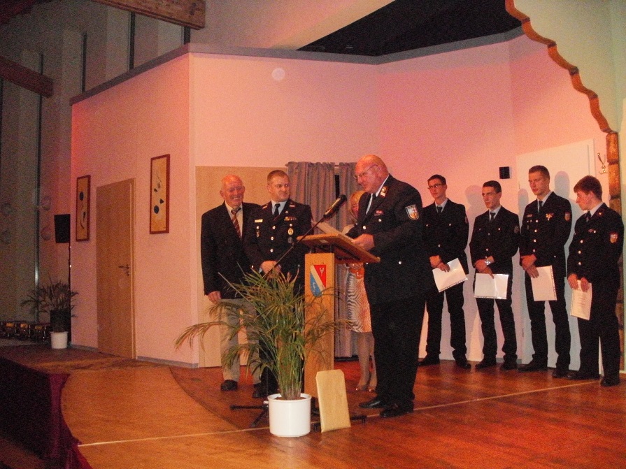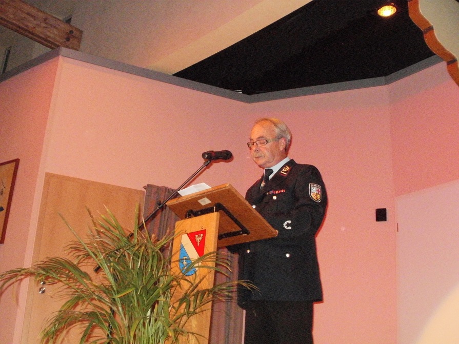 Wolfgang Braun dankte für die geleistete Arbeit während des vergangenen Jahres. Zahlreiche Einsätze und zusätzliche Aufgaben gab es zu meistern. Jedoch sei der Löschbezirk für alle Eventualitäten personell hervorragend aufgestellt. Es zeige sich, dass der Ausbildungsstand und die Motivation im Löschbezirk sehr hoch wären, so Braun. Natürlich wäre all dies ohne das Verständnis der Familie für das Feuerwehrleben nicht denkbar. Auch für dieses aufgebrachte Verständnis bedankte sich Braun recht herzlich bei den Familienangehörigen der Kameradinnen und Kameraden.